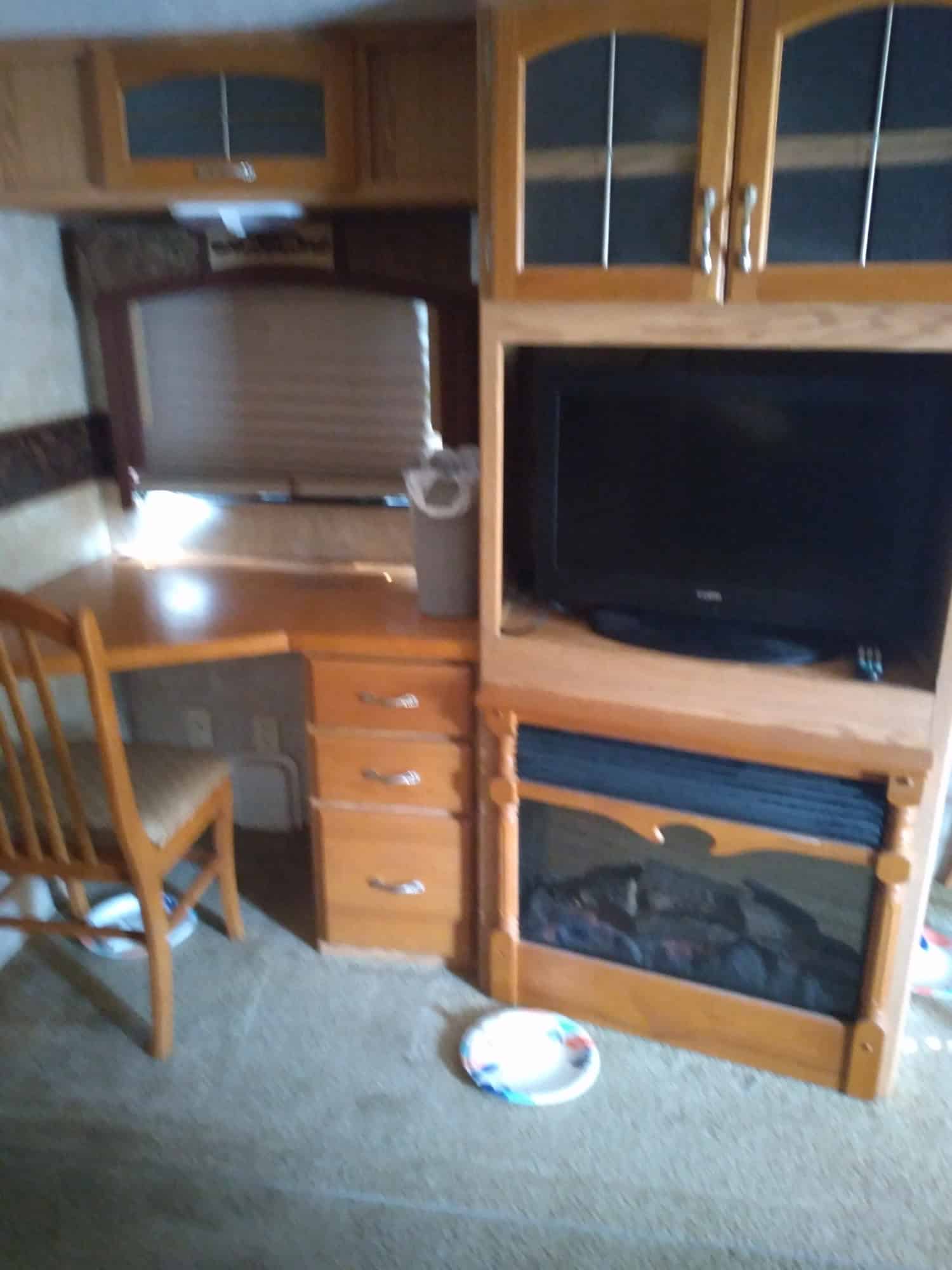 Everything works great except the lg slide has to be hand cranked in. Has new battery so is probably a fuse or switch. Didn’t have time to fix. 3 slides, new mattress, never had a leak. This trailer is currently in Edinburg Texas at Monte Cristo RV park. I live in Oklahoma but a neighbor there can show it to you. I will consider all reasonable offers. You won’t find a better built older model.
