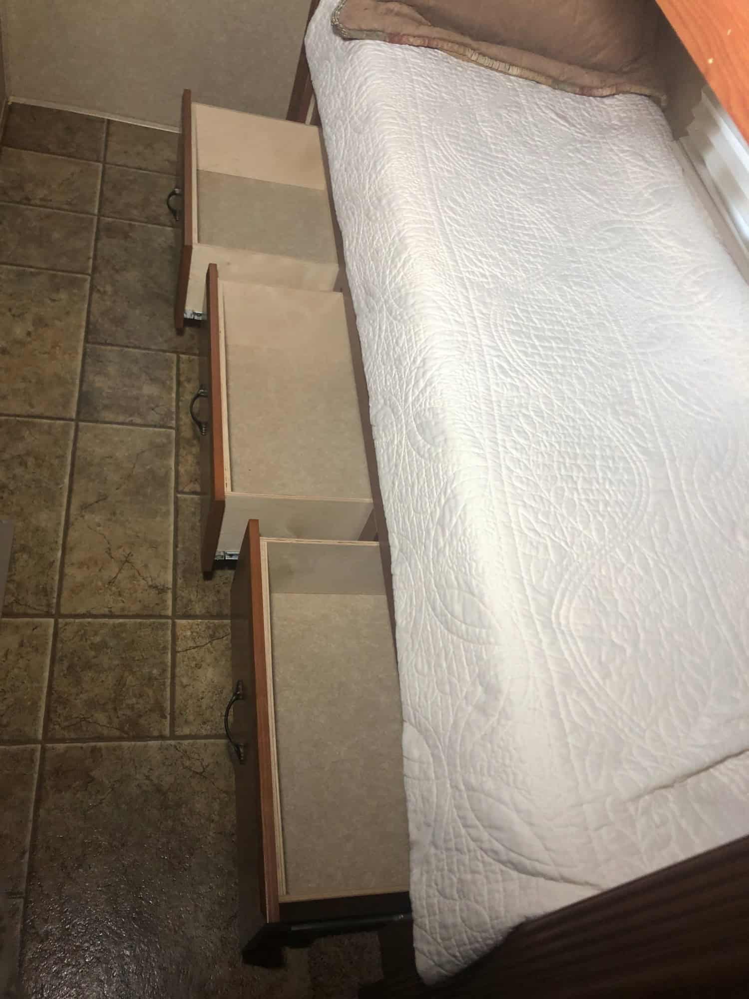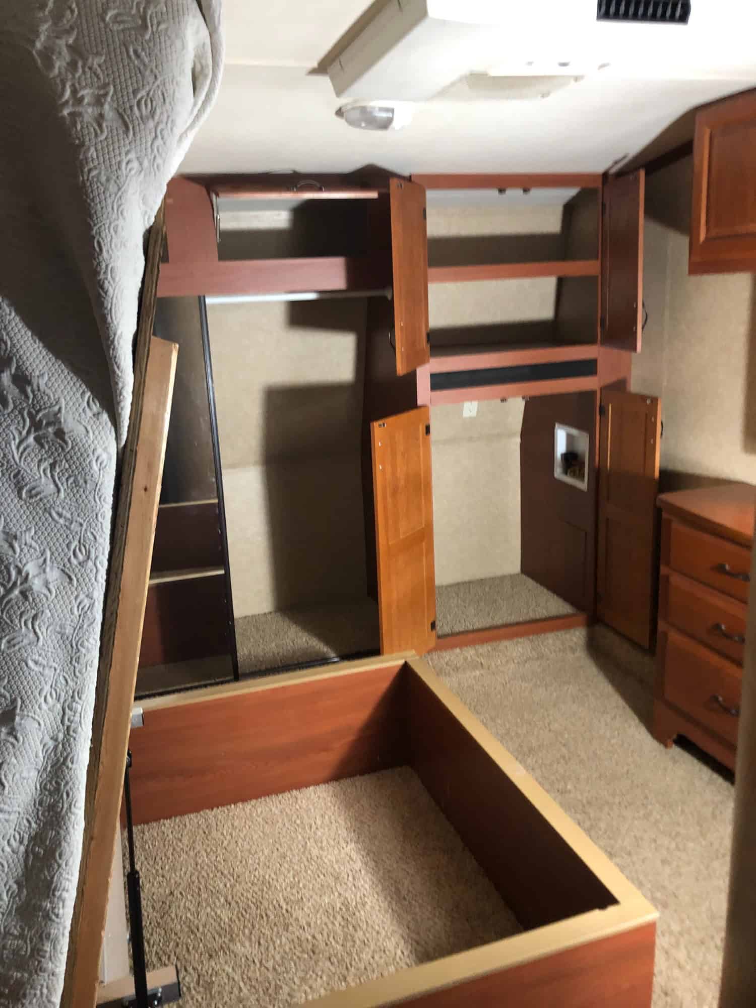 Each bedroom has its own door and under bunk Storage. Shared storage and adjustable hanging space with sliding doors for privacy between the two rooms.
