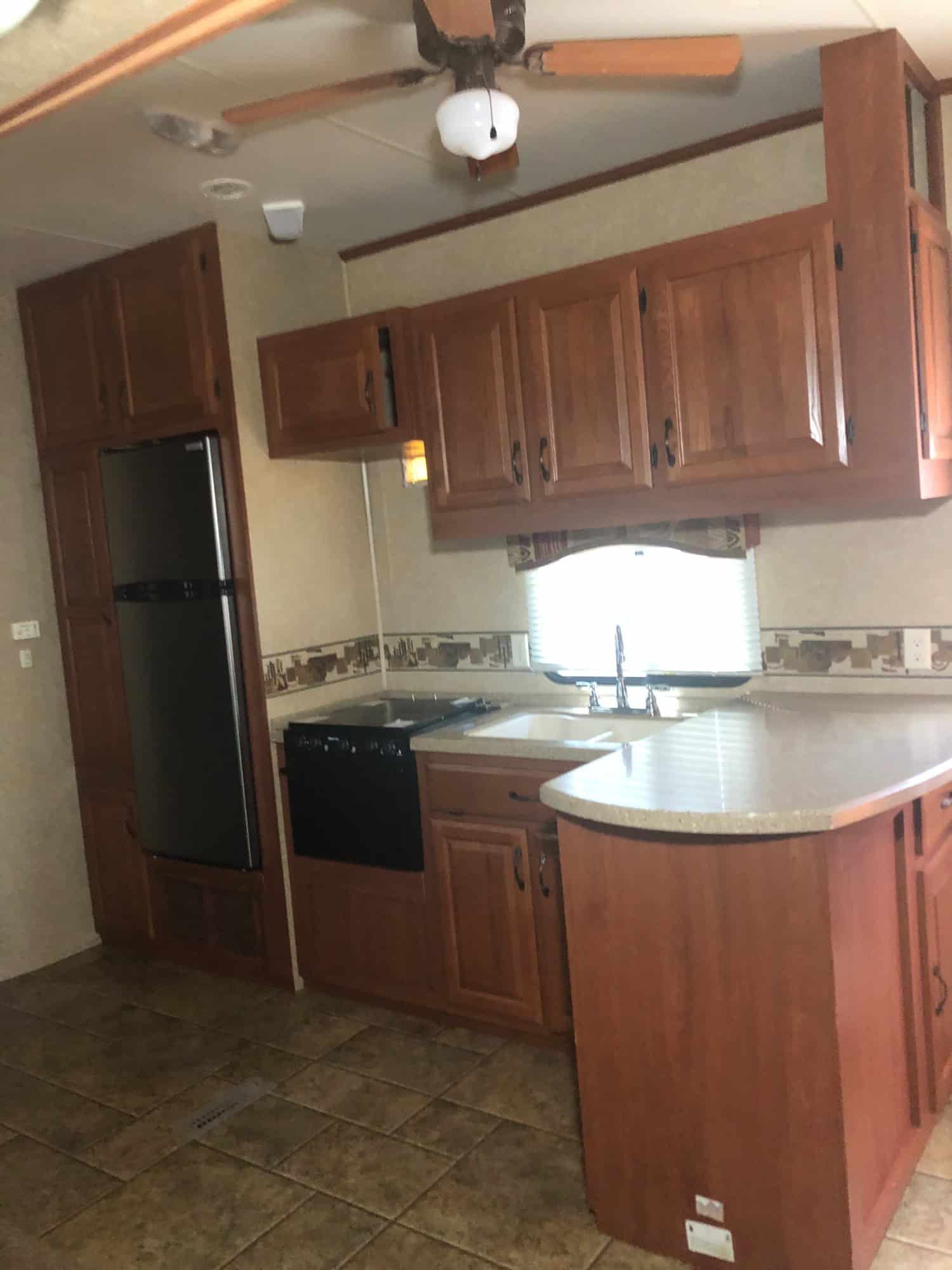 Undermount Double Sink with Covers. Large Pantry, Large Refrigerator.