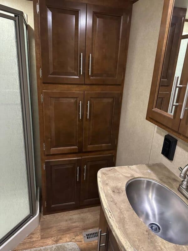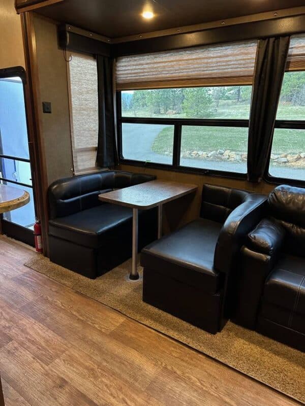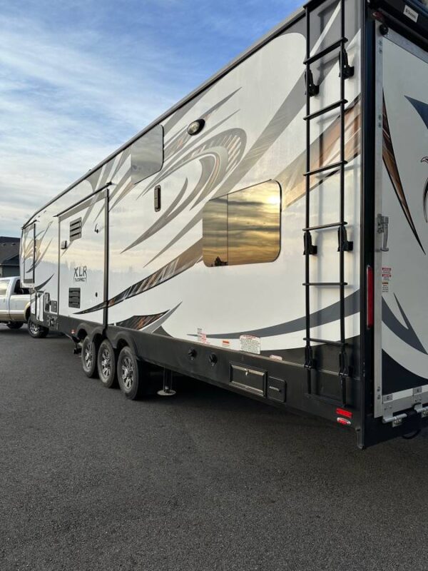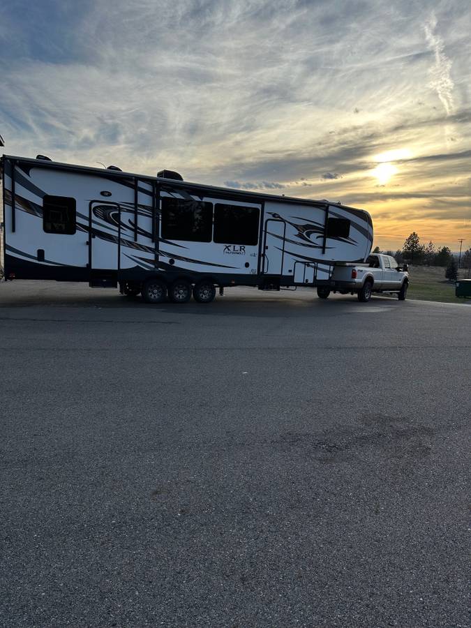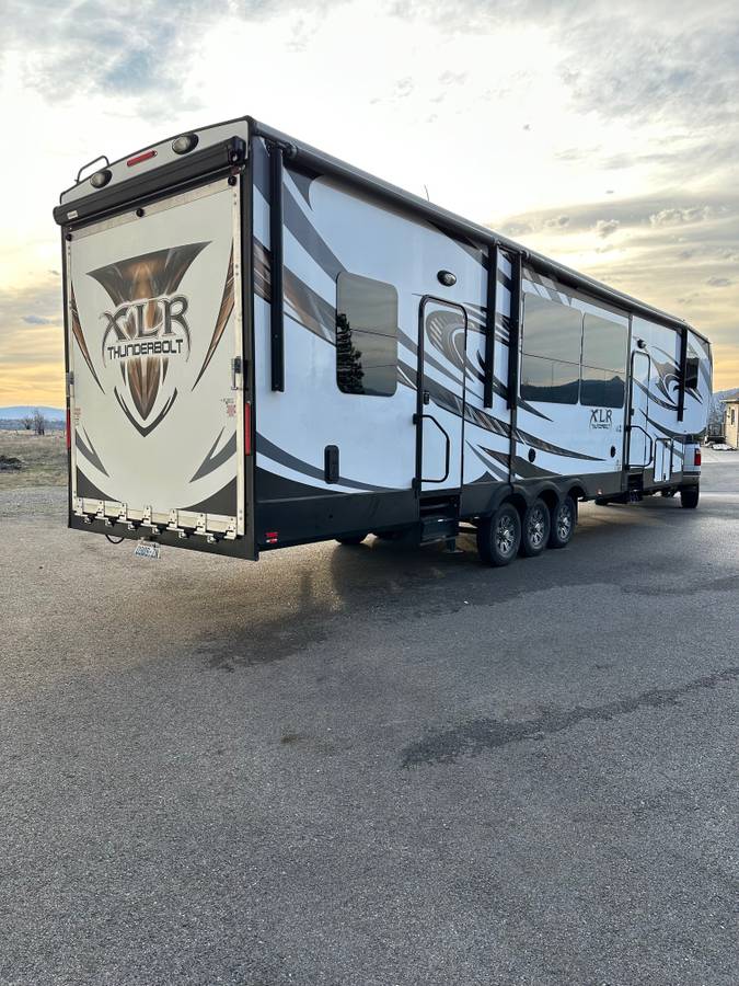 Price reduced for quick sale. Fully Loaded 5th ready for your next adventure! 43 feet, triple Axle Toy Hauler fits two 4 wheelers or a side by side. W/D hookup, rare dinette. Built in generator, AC and auto leveling system (one button setup). Two motorized awnings, inside and outside stereo system, 3 TVs, fireplace. Sleeps 8-10: Queen in Master, two Queens in Garage, bunk, fold-out couch and dinette. Double door refrigerator/freezer combo. Dual Fuel tanks with over 30 gallons that can be used for built-in generator and/or fuel station. Dual Solar Panels and 6V batteries mean you will rarely have to run the generator when off the grid. Generous size bathroom includes shower, toilet, sink and storage. Brand new tires. Clear and free title. Always stored in heated shop over the winter. Available for viewing by appointment.
