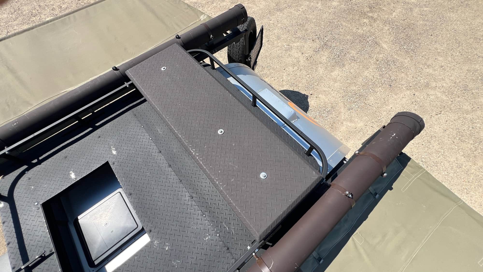 In 2024, while traversing the New Mexico Backcountry Discovery Route, we had a catastrophic failure of the roof basket’s original mounting legs. To this day, I don’t know what happened to cause the failure. Once one of the six support legs failed, the system collapsed. When we got home, I had the basket redesigned with a new leg/mounting system by a local fabricator in Boise. See photos. The basket now sits on three boxed legs and rests on the top of the roof instead of mounted to the side walls.