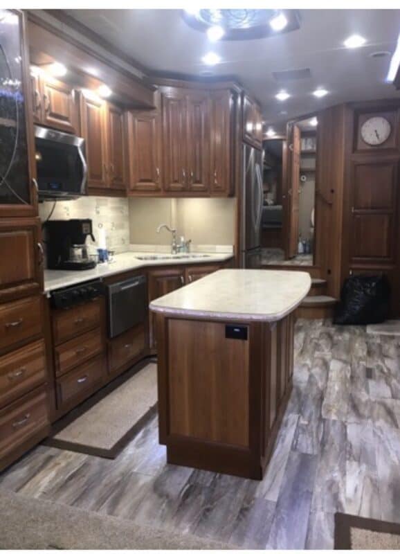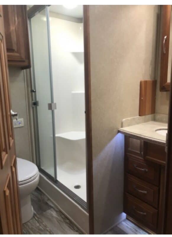 Luxury fifth wheel, gel coated paint, fiberglass, 4 slides, 2 dual patio awnings, all push button controls, Cummins Onan QG 6500 LP generator, auto reel 50 amp. power cord, one touch automatic hydraulic leveling system. aluminum wheels. LED lights. Beautiful inside with high ceilings Full time pkg. Travelers pkg. 3 AC units, ceiling fan, central vac, stainless steel refrigerator, microwave/convection oven, 3 burner gas range, dishwasher, lots of cabinets and pantry, 2 TV’s, DVD, fireplace, day/night roller shades, washer and dryer, king size bed, large closet with drawers and safe Also extras like wooden steps with rails for outside entrance and some smaller appliances like toaster electric skillet, utensils. Tailgater for Dish anywhere.