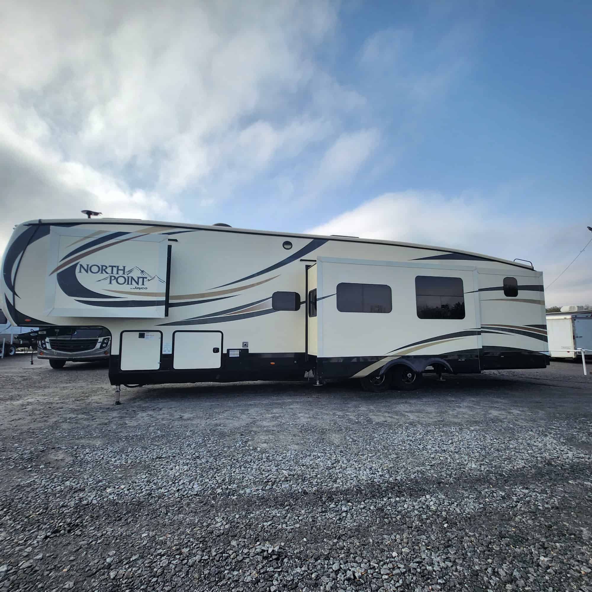 The 2017 Jayco North Point 375BHFS is a luxurious fifth wheel trailer that offers an exceptional combination of style, comfort, and functionality. This spacious RV is perfect for families or those who love to travel in style. The Jayco North Point is known for its high-quality construction and attention to detail.