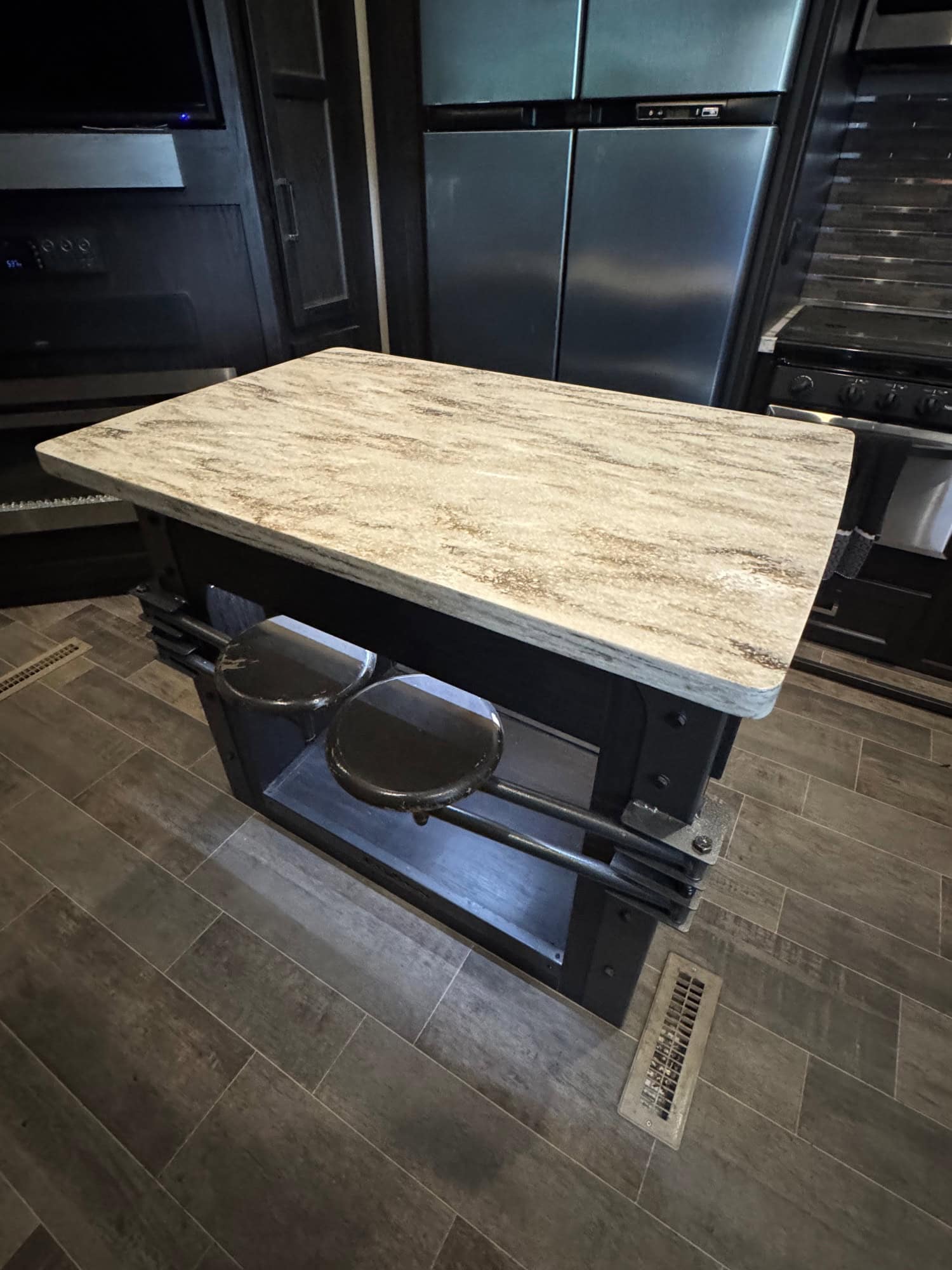 It is a 2017 Keystone Fuzion 417 X Edition 10 year anniversary 5th wheel converted to a gooseneck. Everything works as it should. It has an onboard Cummins 5500 generator. 3 slides, 1.5 baths. Deck folds out into a patio. Has standard sized fridge, 2 queen beds in the back that drop from the ceiling, 1 loft and a queen bed up front. Front bath has a full sized shower. Back bathroom is in the toy hauler part that is just a toilet and a sink. 4 seater couch that has heated seats on the cupholders. The whole trailer sleeps 9. Has a big tv with a fire place and a Jensen Radio along with a tv in the toy hauler. The Island has 4 seats that pull out for more seating inside. It has an awning and has an on board fuel tank to be able to fill your side by sides. Has 3 AC’s and heat. Everything works. It MSRP’s at $102,000, we are asking 58,000 obo.