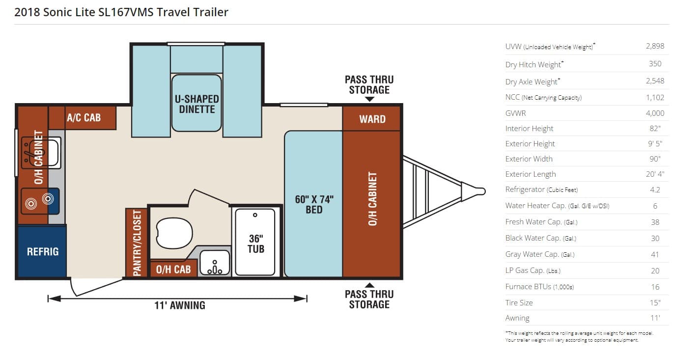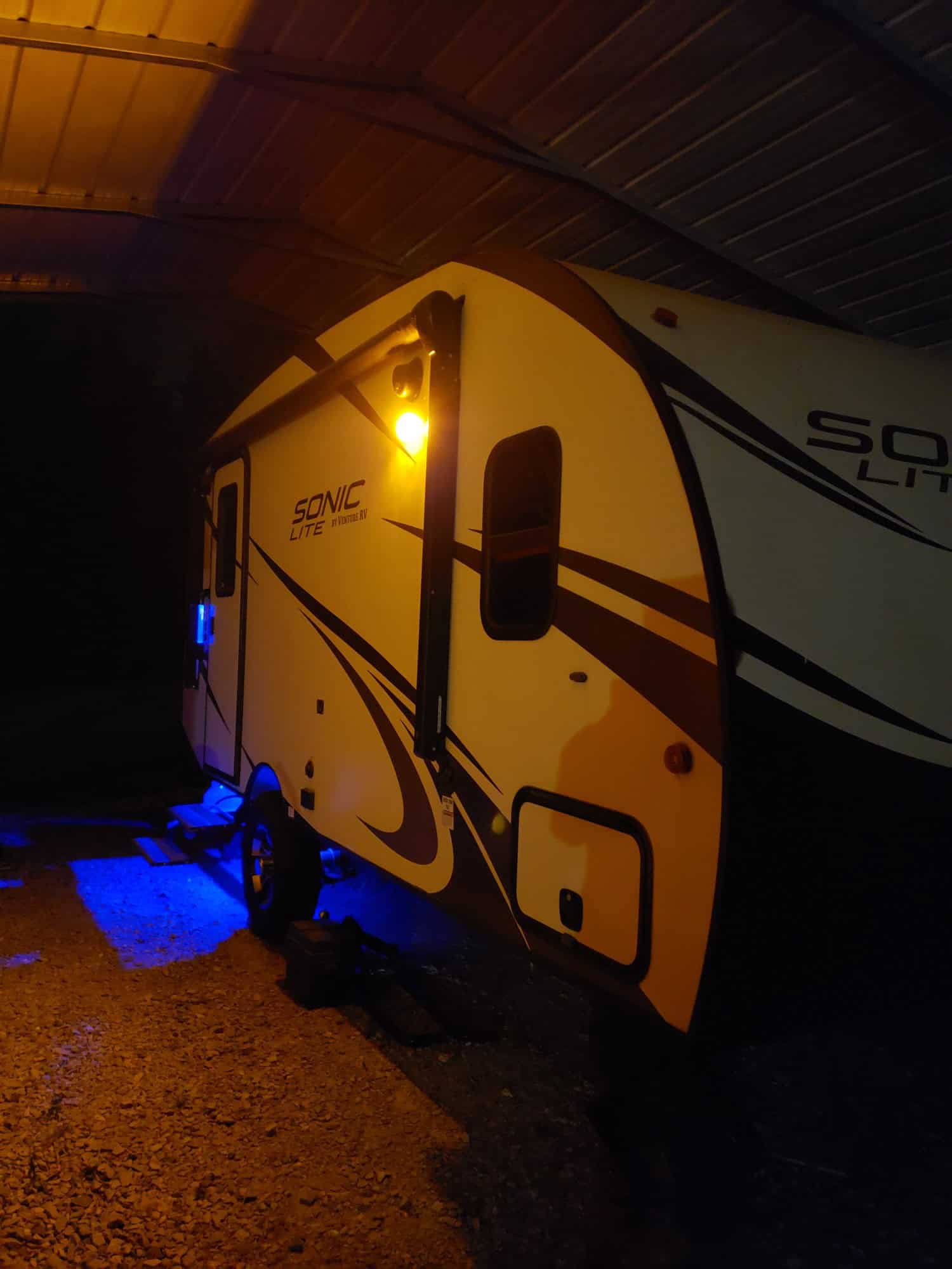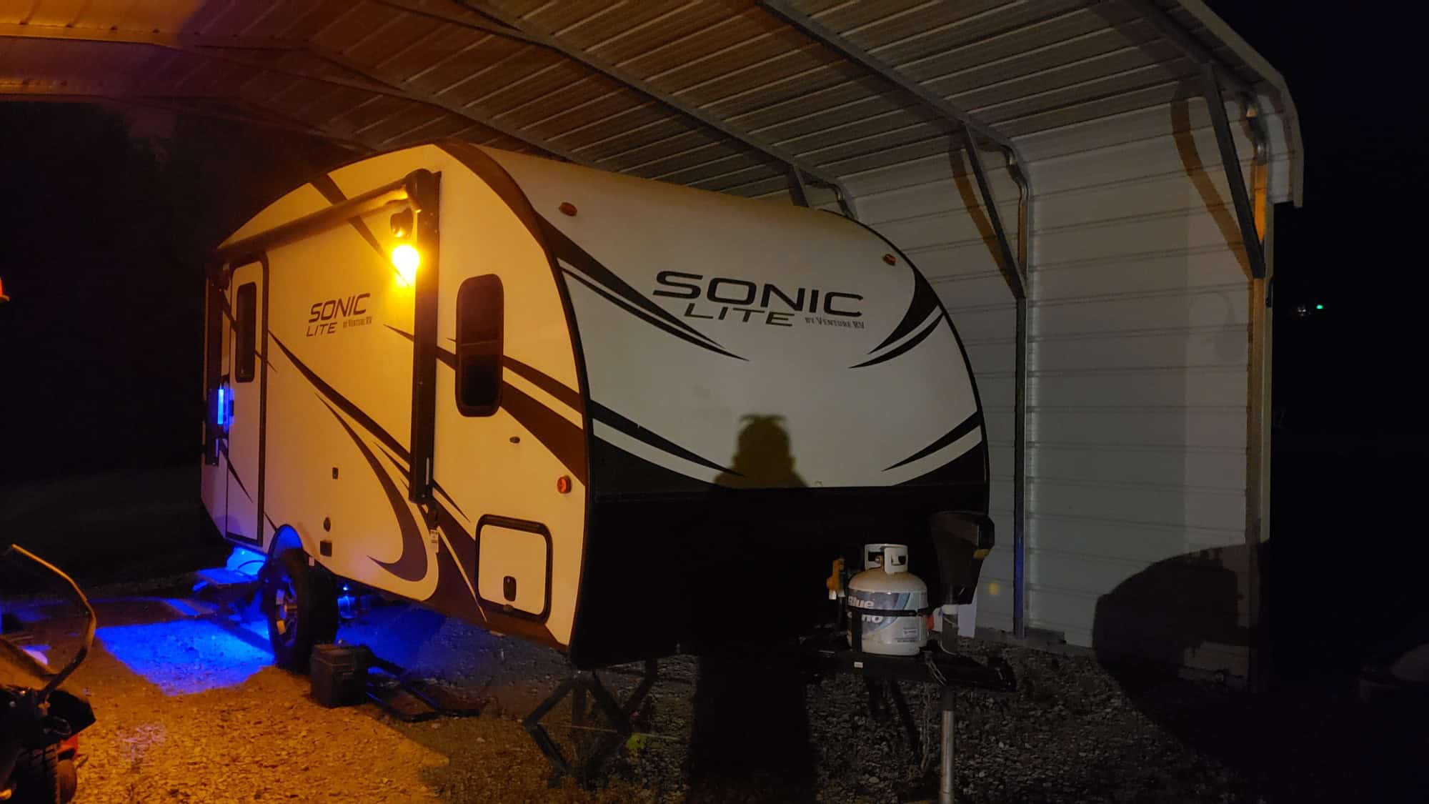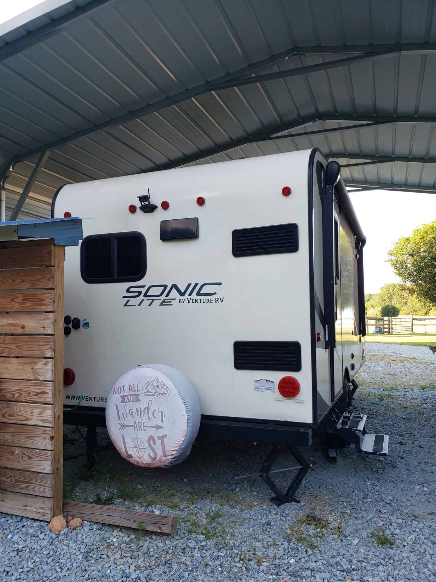 Ultra-lite travel trailer, under 3000 pounds (unloaded vehicle weight), carport kept.