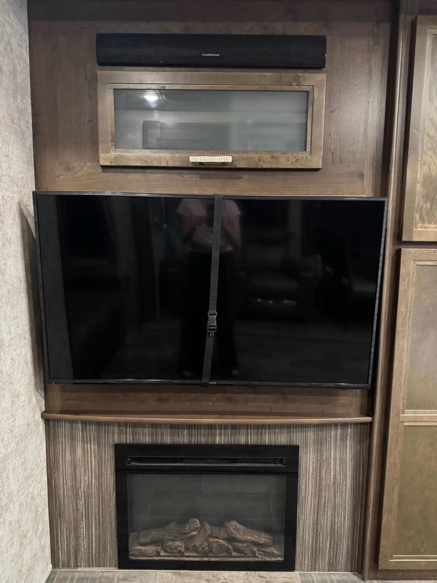 The Highland Ridge OPEN RANGE 348RLS features a well-appointed kitchen with stainless steel appliances, a large pantry, and ample storage space. The living area is perfect for relaxing or entertaining with its comfortable seating, entertainment center, and cozy fireplace. The bedroom offers a comfortable queen-sized bed and plenty of storage for all your belongings.