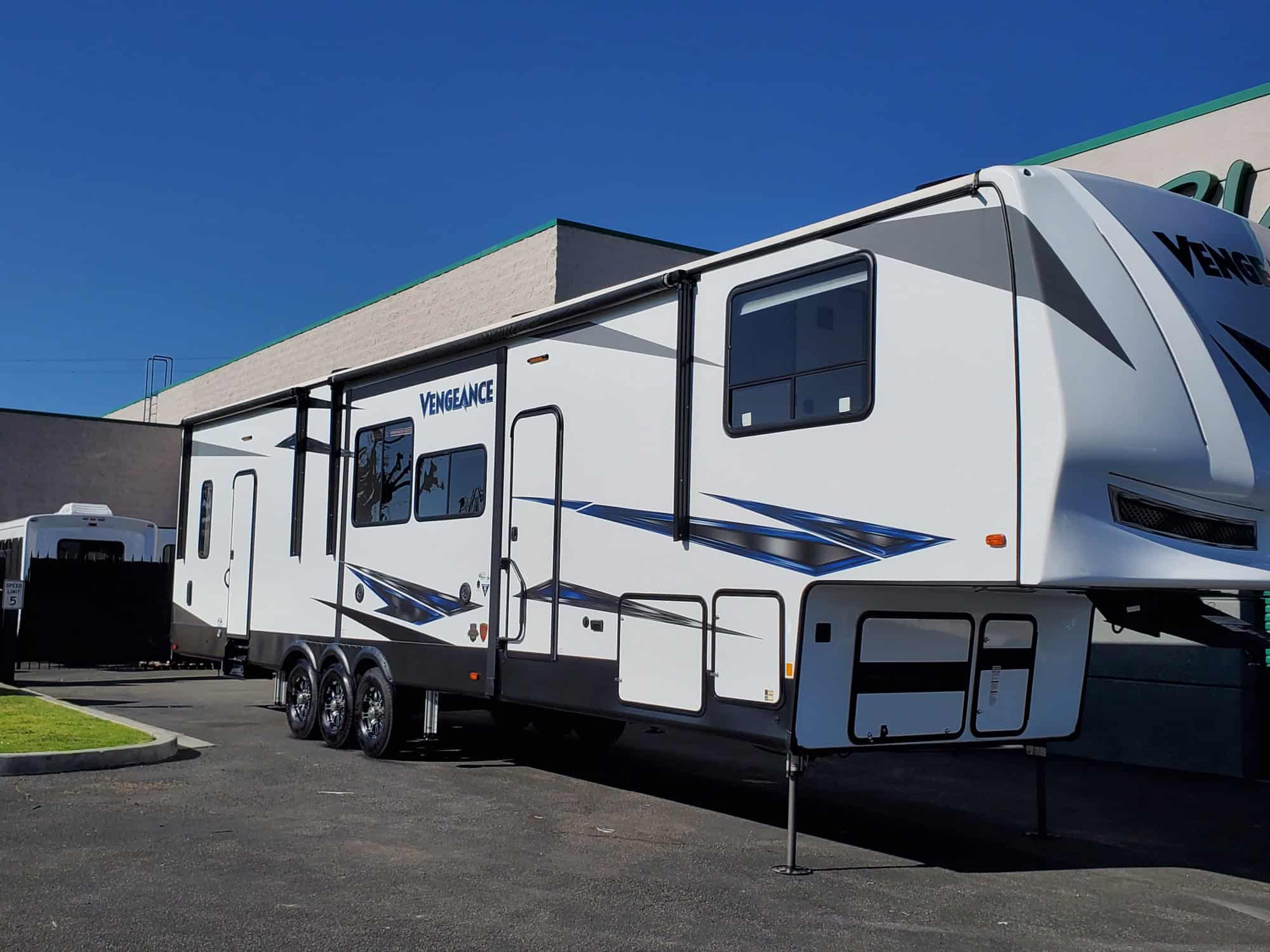 Vengeance (Forest River) Model 388V16 with 4,500 square foot double RV lot in Desert Ironwood Resort, Borrego Springs CA.