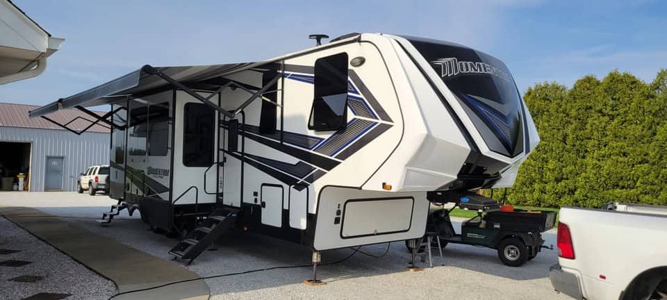 Was just appraised for potential buyer at 69,300. have 10K worth of upgrades since purchased fall 2023. Pre Covid built! 15ft garage with patio and awning with deck steps. Half bath in garage, Happijack power beds. lower bed converts to benches with center table. Washer/Dreyer Hookup. New G rated tires in fall 2023. New MORyde rubber pin box for smooth towing. New MORyde entry steps with assist and hand rail. 2024 both entry side awnings replaced, added kitchen slide topper, 3 vent covers for power vents. new Interstate batteries 2025. Generator for dry docking with fueling station with 2 tanks. One for gen and one for fueling toys. Kitchen has residential refrigerator runs on gas and shore power, 3 burner stove w/oven, Full size sink in Island with pop up side and 2 stools for seating. Large TV with fireplace & Pantry. Slide with 4 recliners for seating and loft bed with ladder. Central Vaccuum system. Full bath with large shower with seat, upper bedroom with queen bed. (new Mattress) under bed storage, 2 closets in slide. 3 roof air units, built in stereo with outside TV. Added 3 cameras with 7" monitor for tow vehicle. Needs nothing. Ready to camp. Water system sanitized and full this spring.