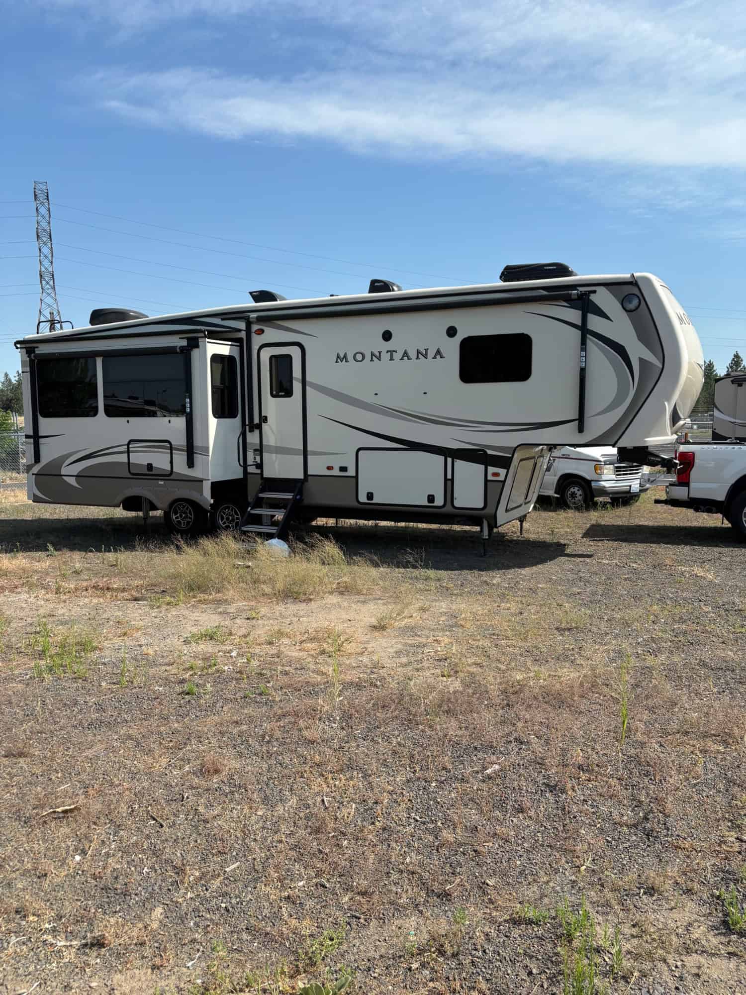 2019 Montana, top of the line, 3 slide outs with toppers,2 A/C units, stainless steel appliances solid surface countertops, central vacuum, 3 tv’s, in great condition no pets or smoking