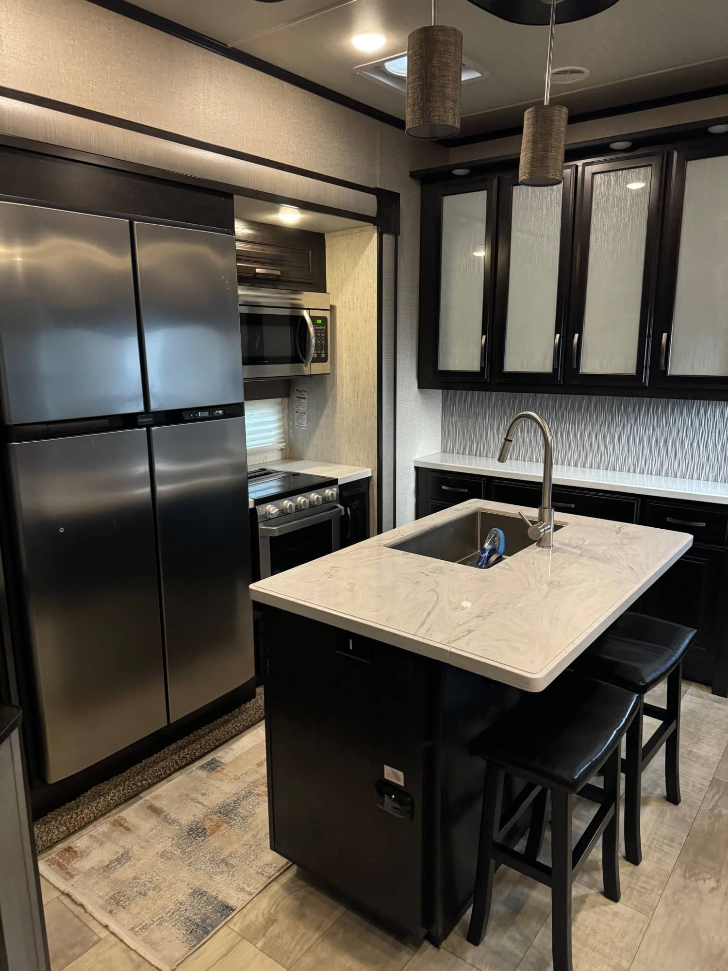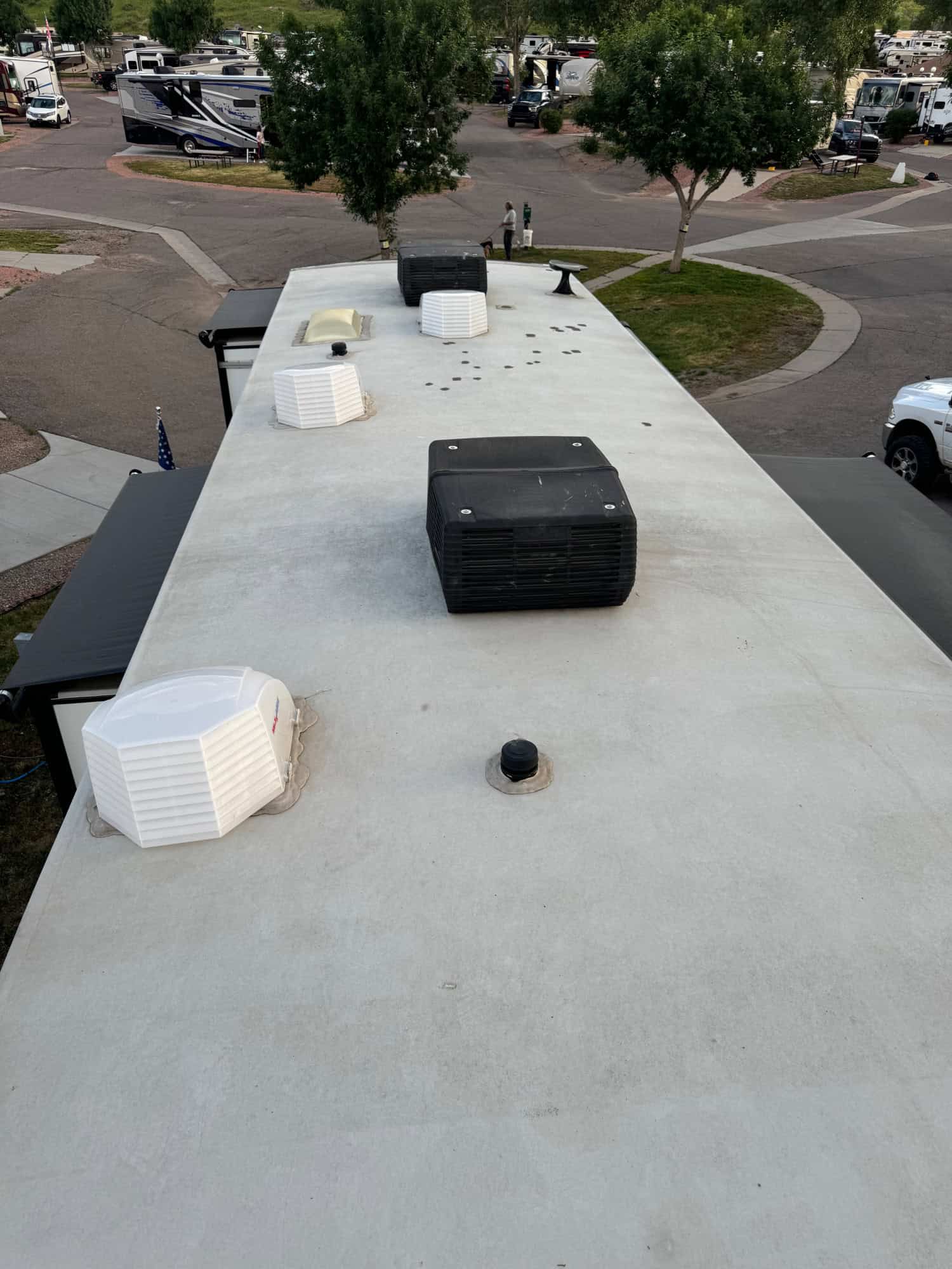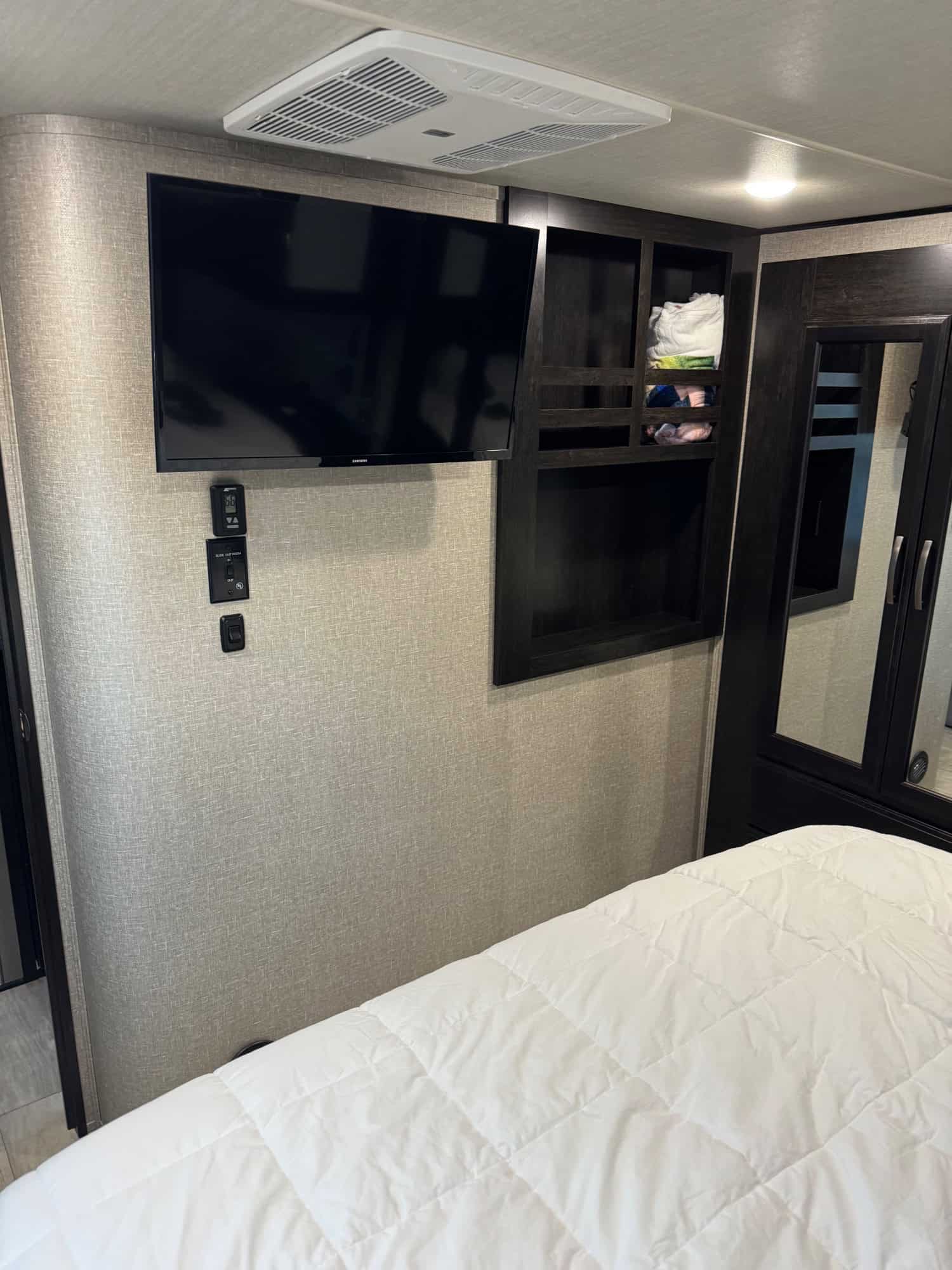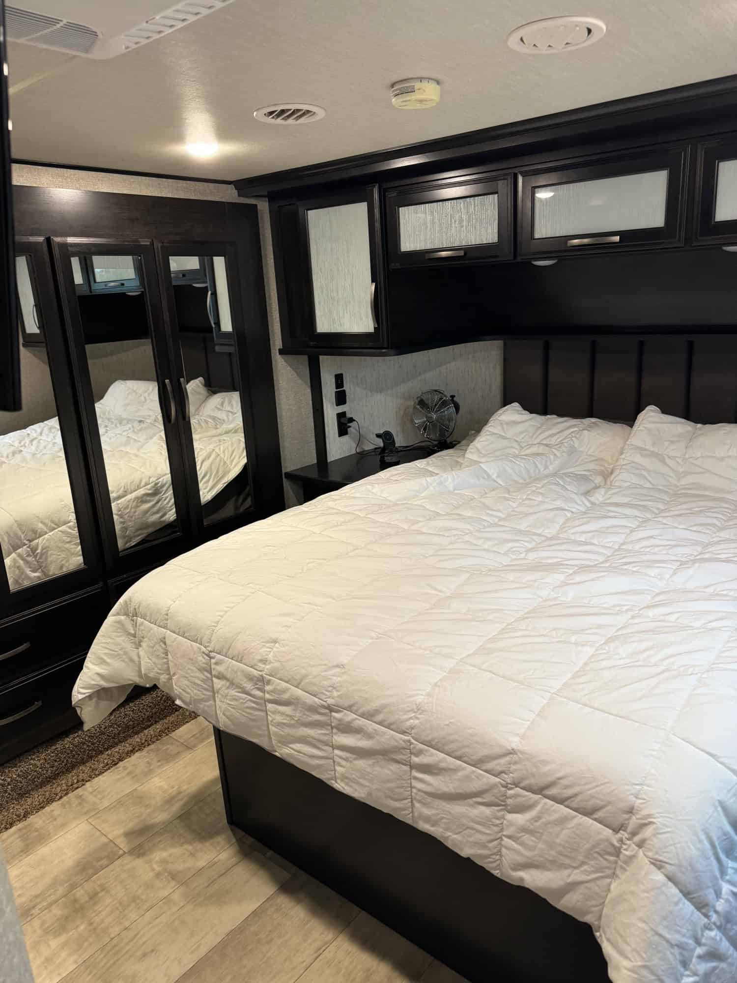 This unit is in excellent condition and has been well maintained. It features brand-new tires, an on-board generator, and three air conditioners for optimal comfort. The exterior was professionally polished and waxed in Fall 2024, and it includes custom camper skirting that provides additional hidden storage.