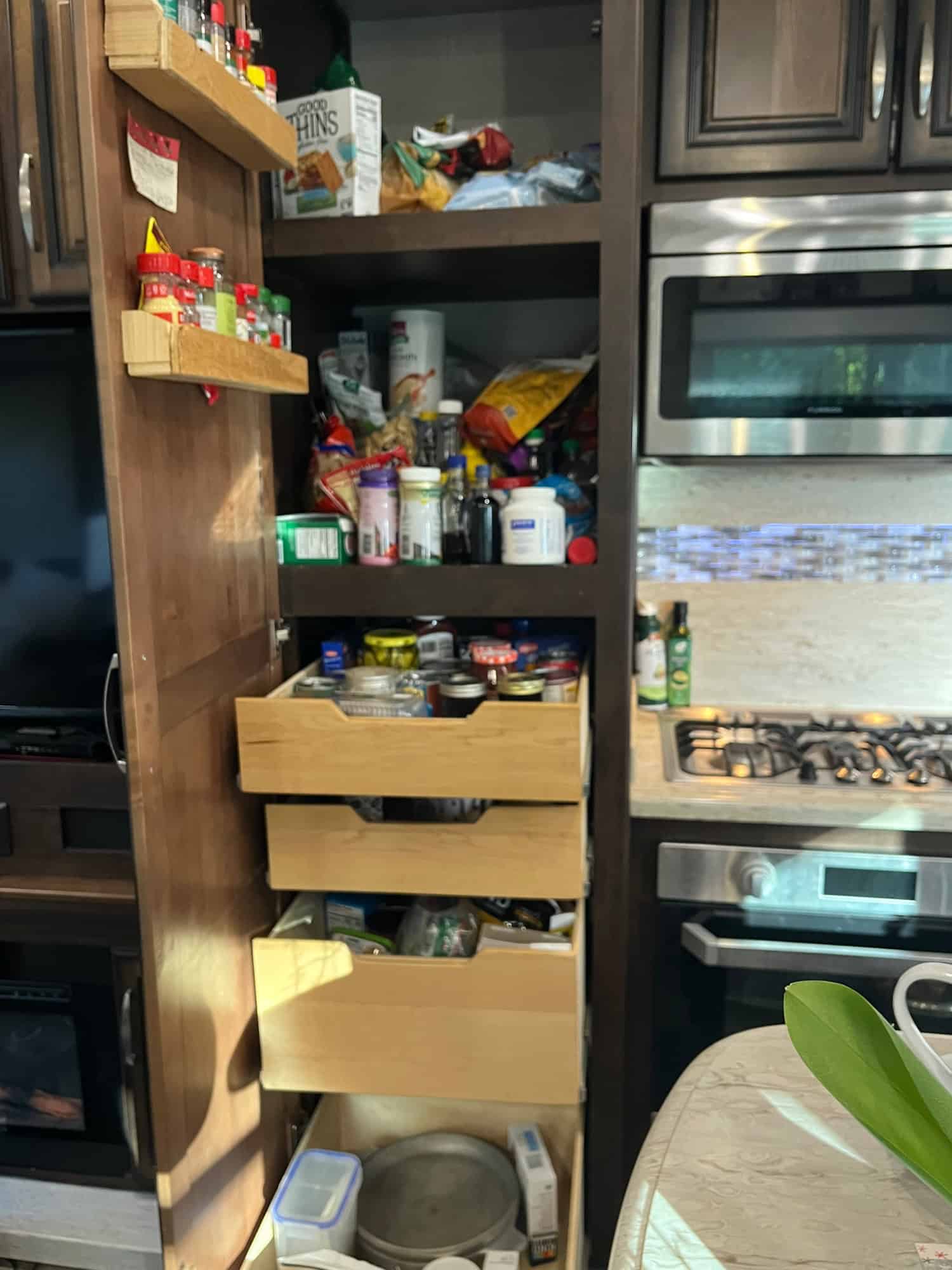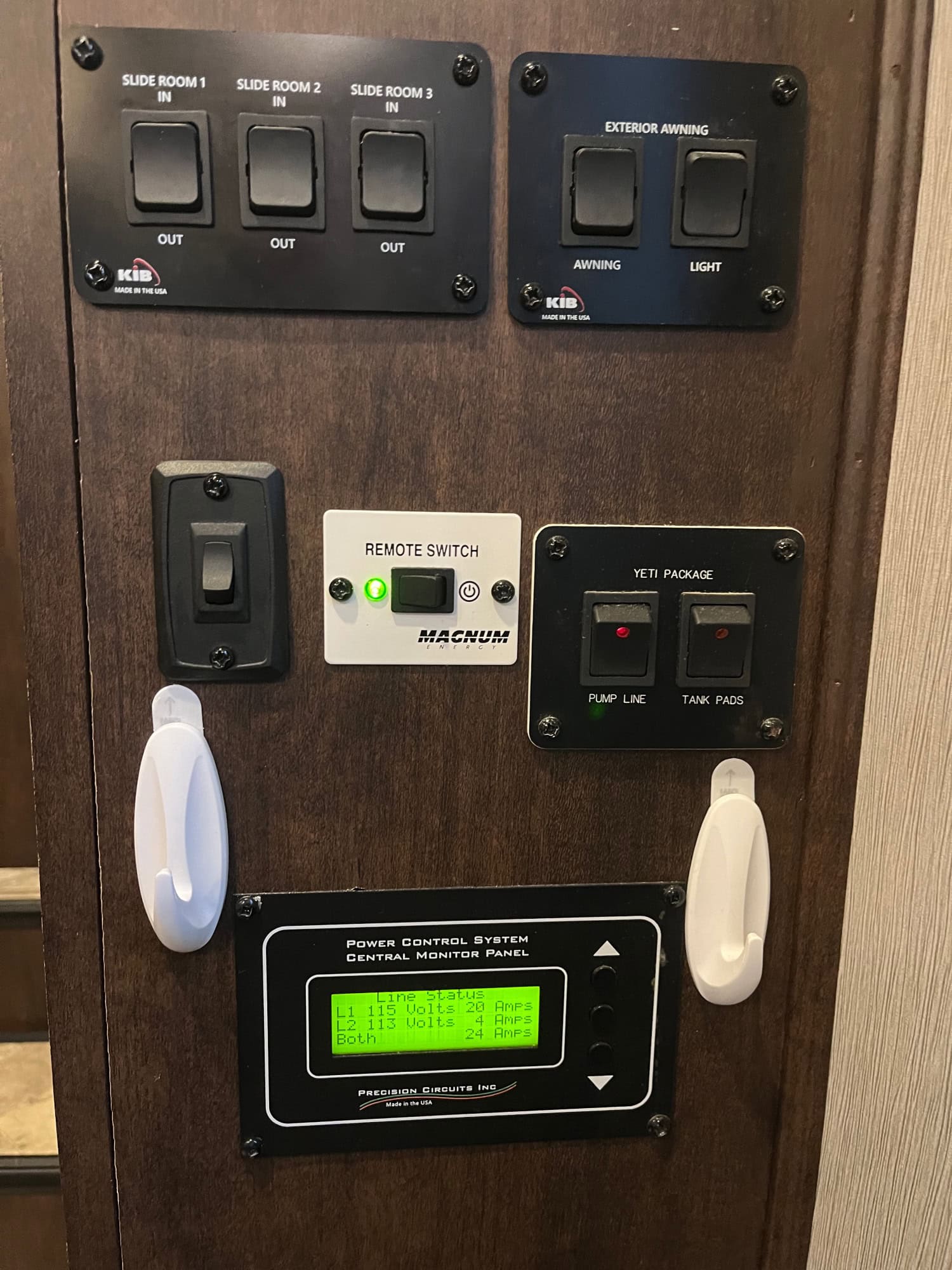 a third outside TV, two electric Dometic awnings (one brand new), auto electric cable winder, and huge passthrough basement storage, six heavy duty hydralic autoleveler cylinders, MoreRyde hitch suspension, double coach batteries with solar trickler, are just part of the long list of options on our rig! Mfg. build list and manuals are available. Will replace furniture or allowance fir your choice , mfg defect in material Lippert acknoeleges