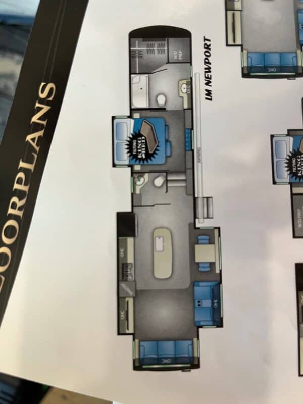 HEARTLAND 365 LM NEWPORT is the ultimate in luxury rv living, yearround comfort with residential space and comfort. Insulated windows and three roof airconditioners make any climate a breeze. Opposing living-kitchen slides and an island with double farm sink, counter space, pantry with pullout drawers, residential 4 door fridge and dishwasher drawer are the ultimate chefs delight!