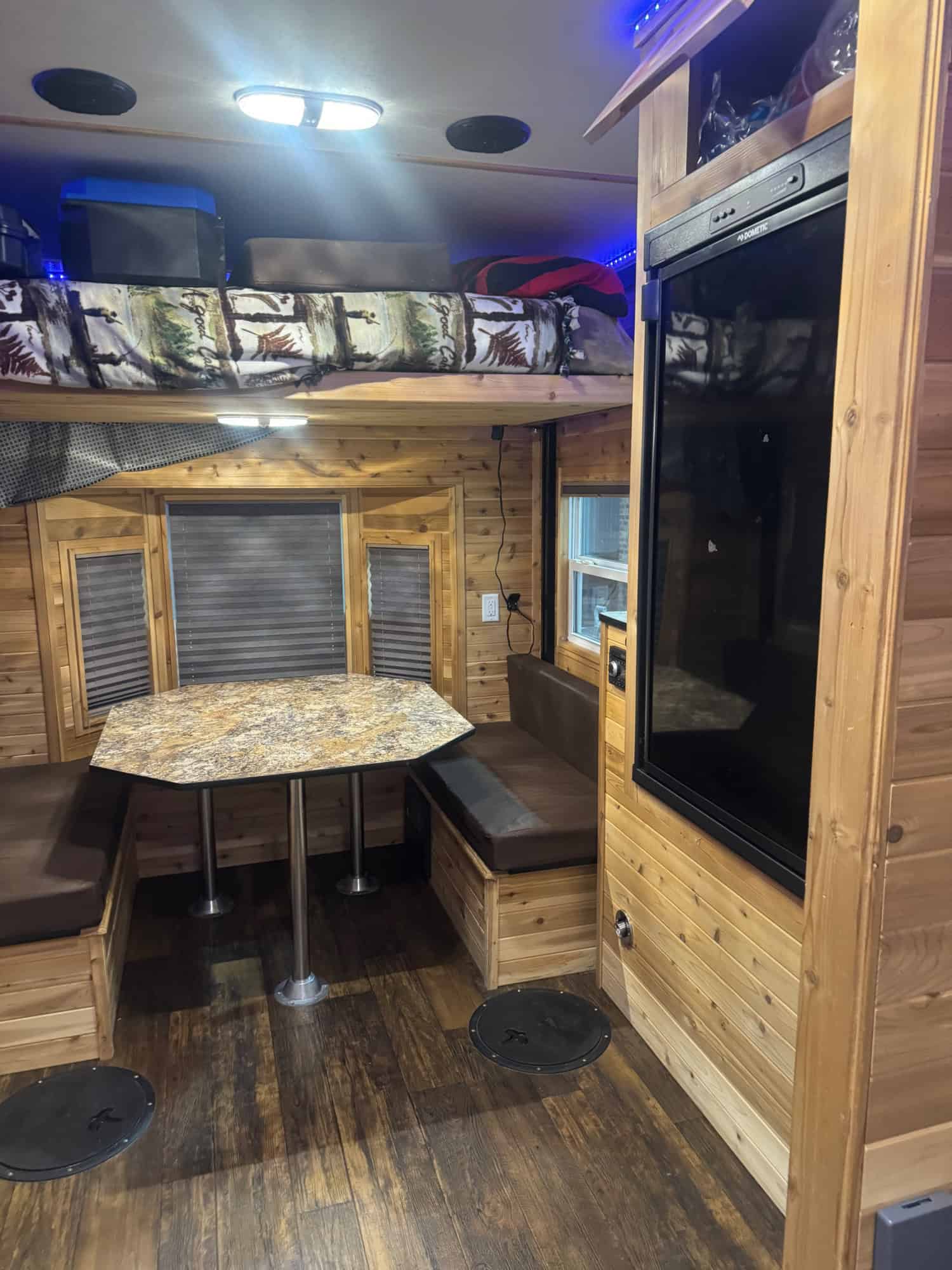 2020 Ice Castle – American Eagle 8×17 with RV kit. Includes generator, refrigerator, stove, microwave, and 32” TV. Excellent condition and ready to go ice fishing