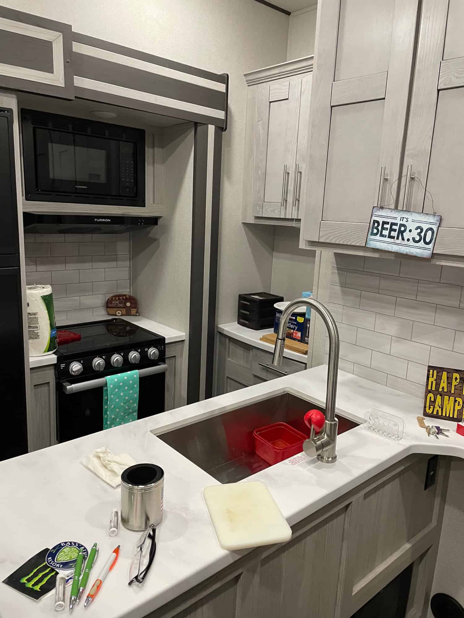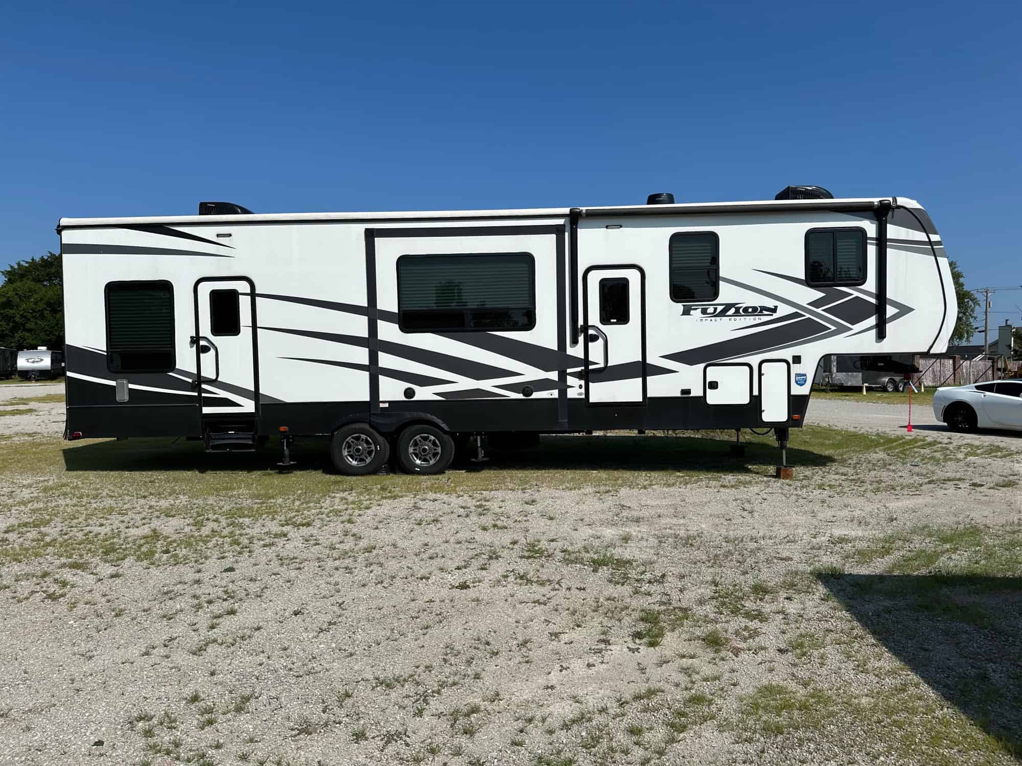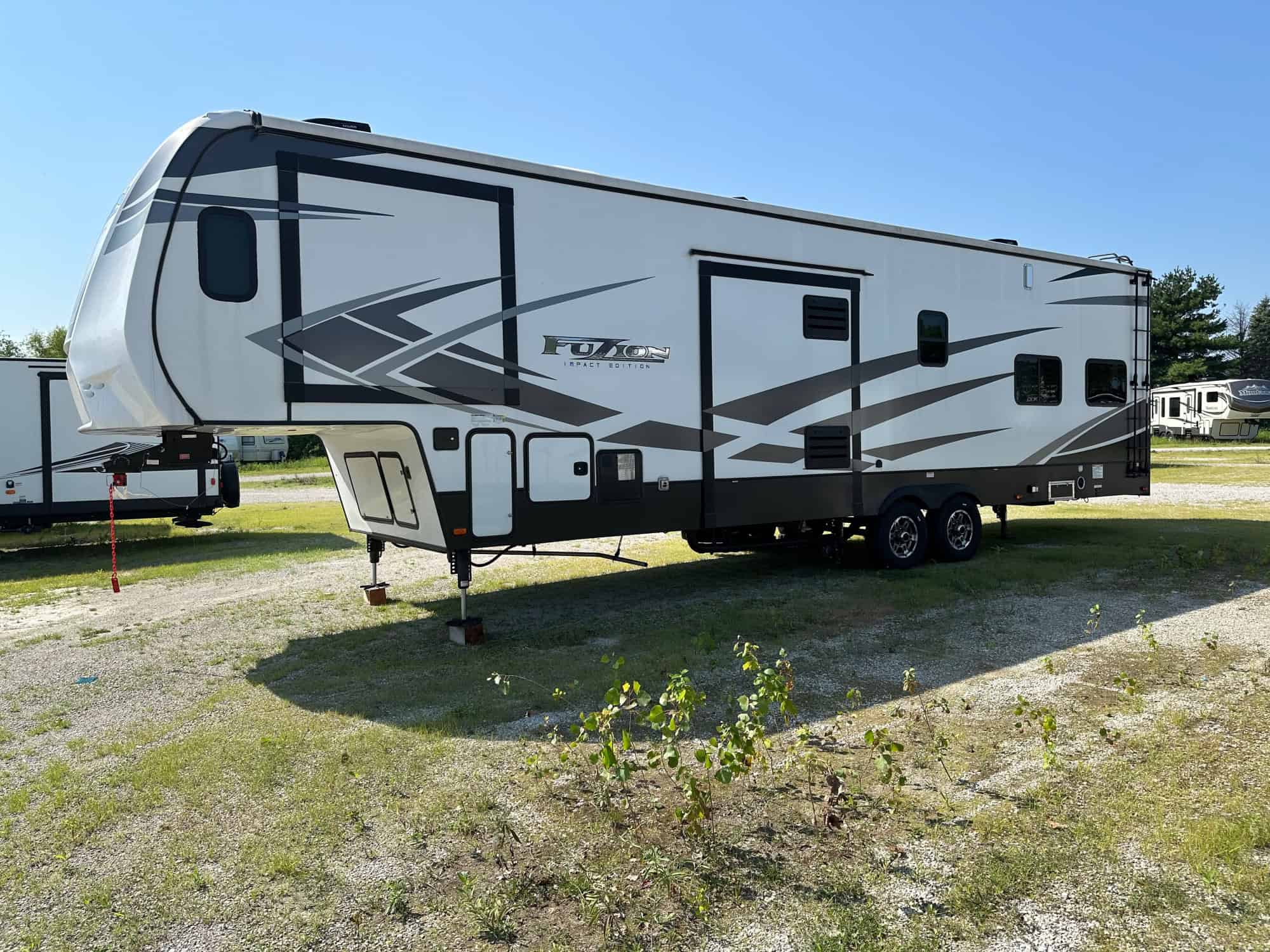 Specs: Length: 39.0′ | Weight: 12607.0 lbs | Slide Outs: 3 | Sleep Number: 7 | Exterior Height: 13.08′ | Fresh Water Tank: 106.0 gal | Black Water Tank: 88.0 gal