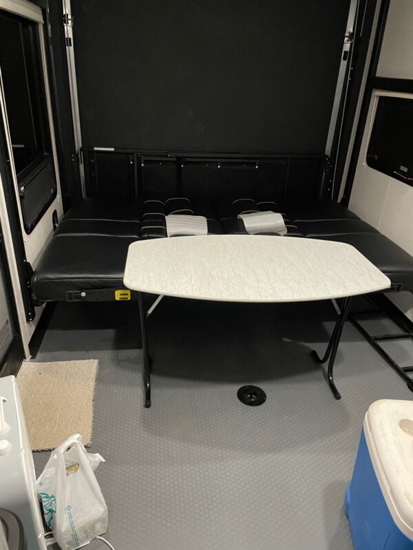 8’ ramp door, fold down party deck w/rails and electric awning.