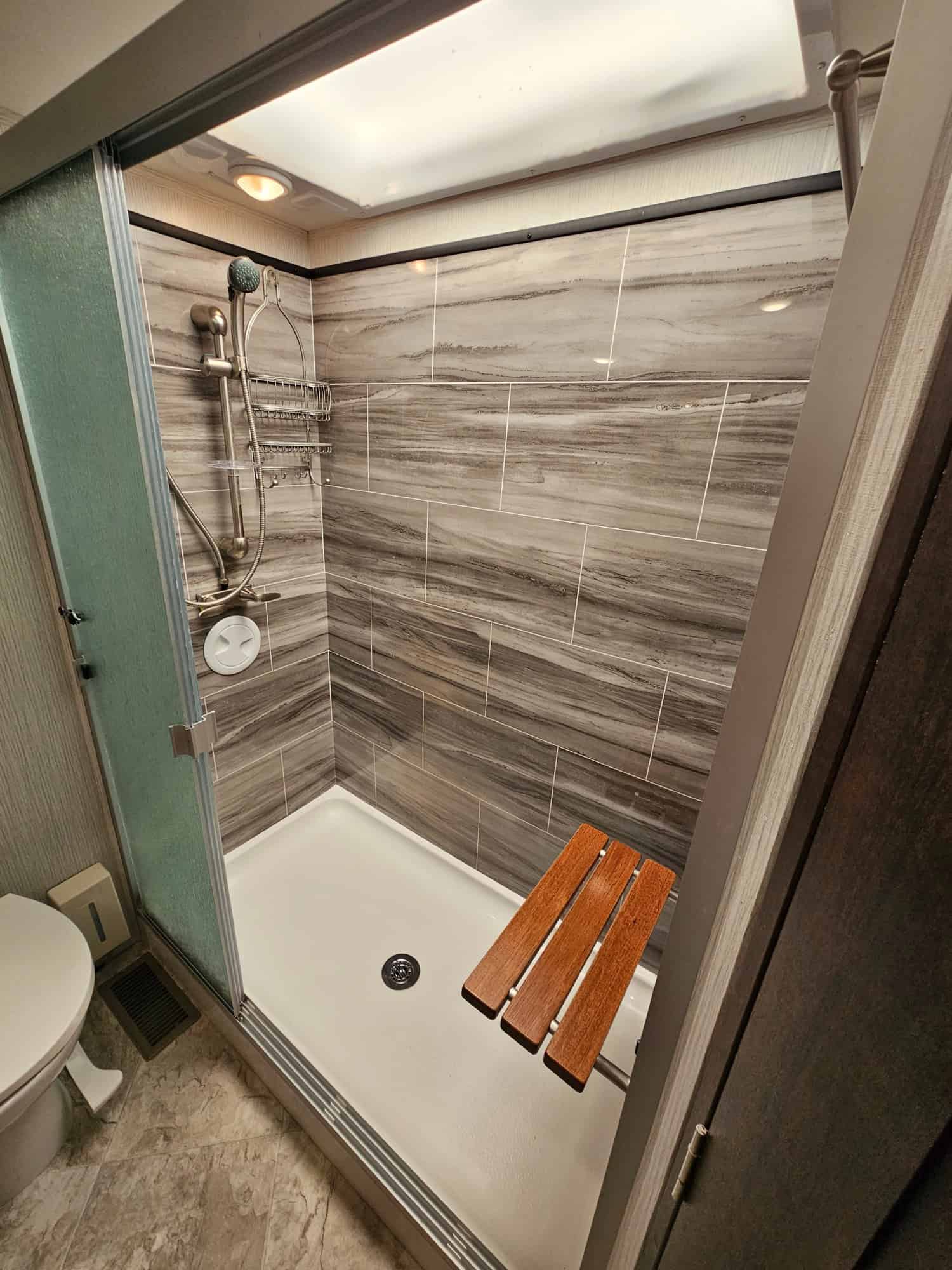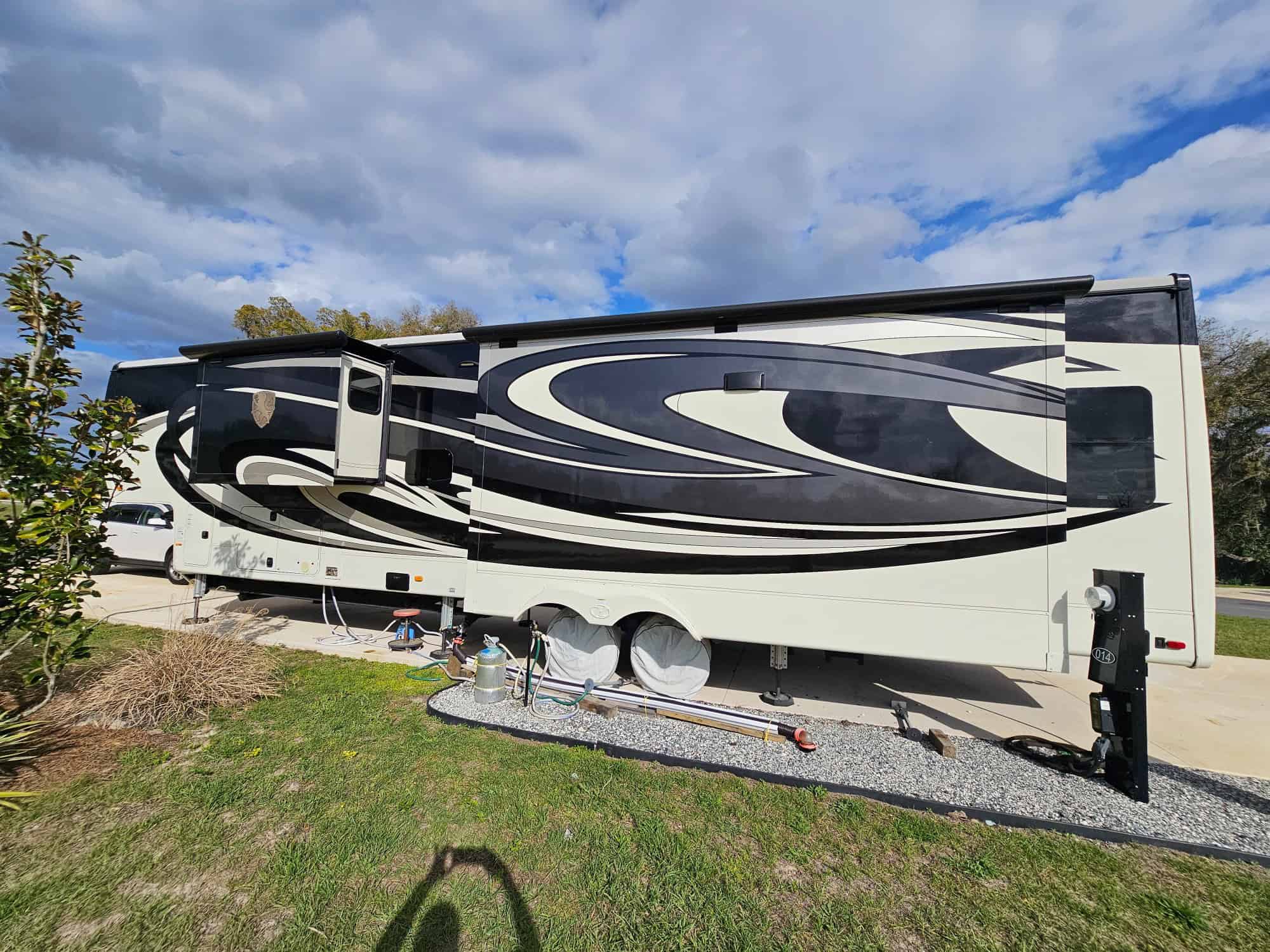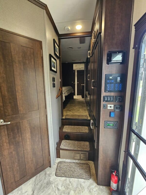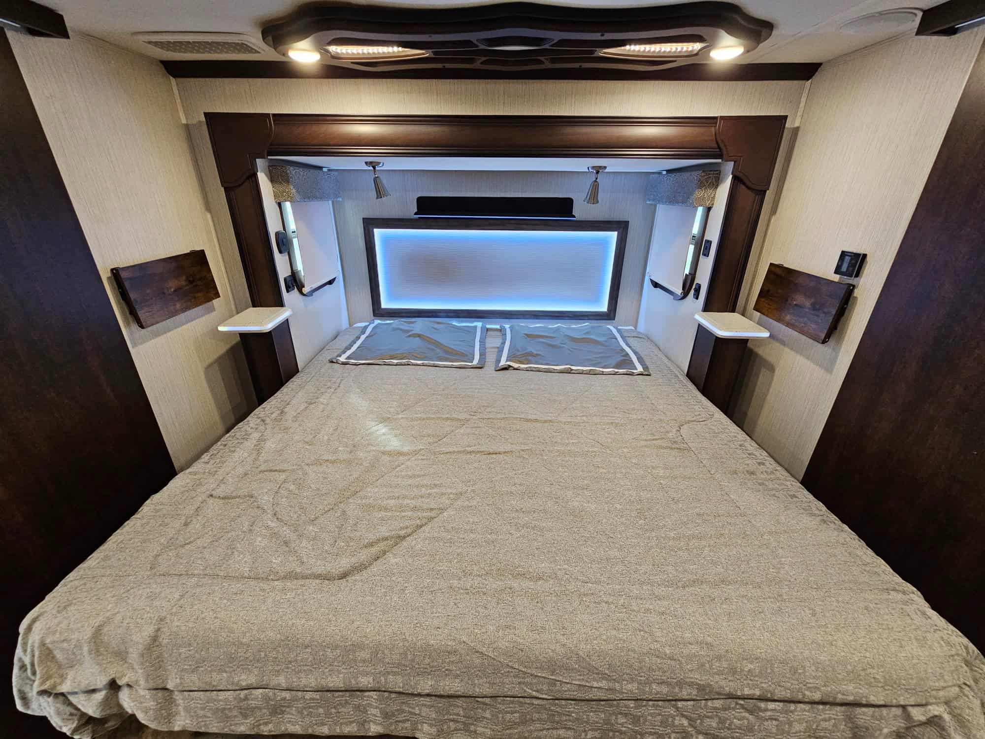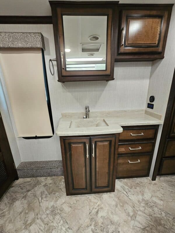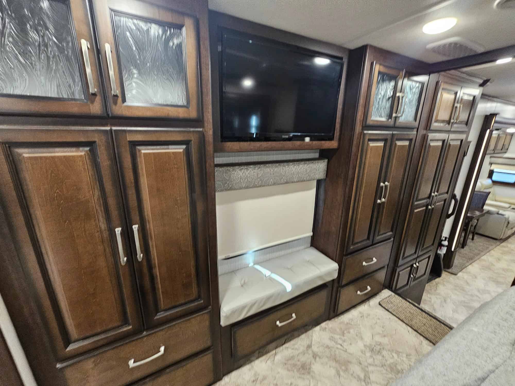 Heartland Landmark 365 fifth wheel Newport highlights from: Opposing Slides with Awnings,55″ TV with Soundbar in Living Room, TV in Primary Suite, Outdoor TV, Full Bathroom with walk-in shower, Primary Suite, Walk-In Closet, Laundry Closet with washer-dryer. Half Bath, Large Island with farmhouse sink, The large opposing slides are what create an open and inviting space in the back of this unit so that you can gather with friends on the sofa with end tables while you watch something on the TV with soundbar. Plus, if you are in the kitchen creating a delicious meal on the three-burner gas cooktop or washing dishes in the farmhouse sink or with the convenience of the Fisher-Paykel dishwasher, you can still be a part of the fun. You can use the table with chairs to eat dinner or play a game, with a pull-out extension for more table space. What fun it will be to experience the exclusive list of features found in the Landmark 365 fifth wheels from Heartland RV! You will have smooth rides to every campsite with the 8,000 LB Dexter axles, the 17.5″ tires, and the Mor/Ryde suspension system, and the high-gloss full body paint and frameless dual-pane windows, Yeti extreme cold winter package. DirecTv Rooftop Satellite System. The interior is full of fantastic and helpful features, like a ceiling fan, a First Alert safe, and USB outlets. Plus, you will always want to make time to sit back and relax on the power theater seating with heat and massage. Well maintained! One owner. $65,000 OBO.