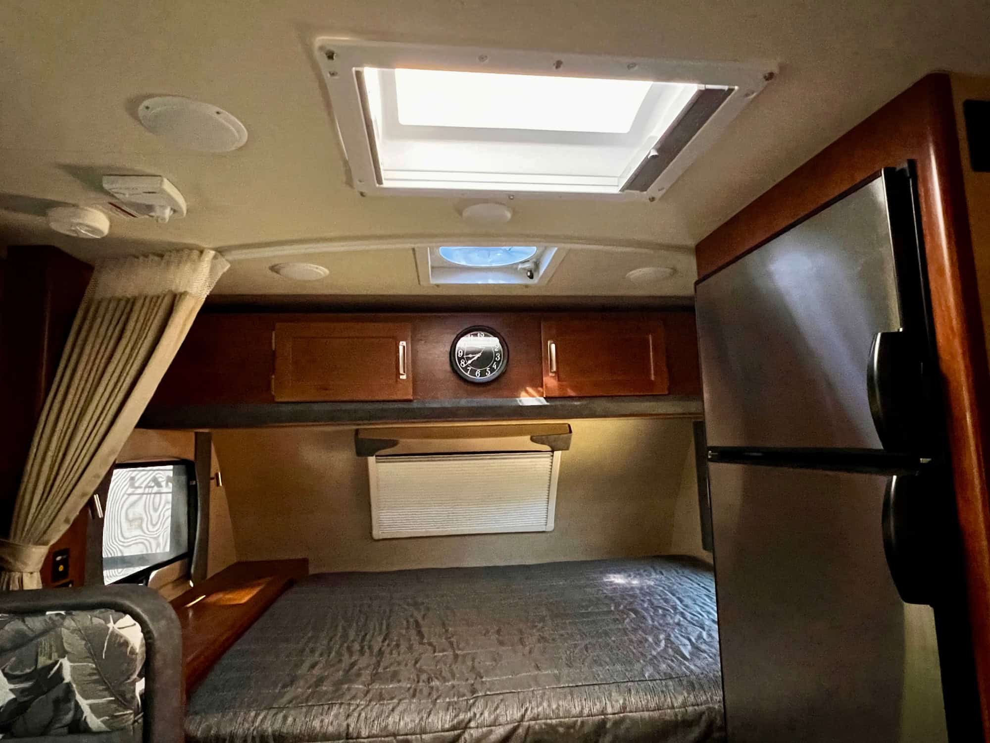 One owner trailer in excellent, like new condition, and came off the assembly line 8/21. It’s offered for sale because we are upgrading to a larger unit. It has been lightly used (two thirteen day trips out west) and performed very well in temps ranging from 25 – 104 degrees. It has always been stored indoors and connected to power. It’s equipped with many options including 4 season weather package, mountain graphics, electric stabilizers, power jack, keyless entry, power awning, backup camera, Fantastic fan w/remote, Autoweave window cover and more. It has 2 lithium Battleborn batteries, 2 190 watt solar panels, 1500 watt inverter and battery monitor. It’s very roomy for it’s size, has great storage capacity and tows easily. It sleeps five – standard size queen bed, convertible dinette, small bunk above bed. With Dometic Lo Pro model AC on roof, it will store easily in an indoor facility with a 10 ft. height door opening. It was professionally cleaned and waxed. Highlights listed below. Please email for additional details/options/ photos.