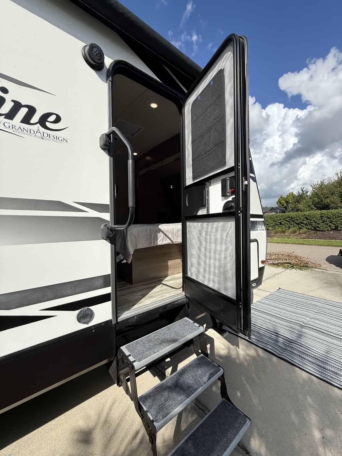 Well-maintained and has tons of upgrades and extras to make your camping experience a snap. New heavy duty Tires in 2025 (ST225/75/15 E rated) and will include a Blue Ox BXW1000 SwayPro weight distributing hitch, professionally installed solar panels, 2 Eco Worthy 100 AH Lithium Ion batteries, Tire Minder Tire Pressure/temperature Monitor System (TPMS) installed, AMTFO Backup Camera (that also shows you the rear view as you drive!), five matching aluminum wheels with custom built mount for spare tire, SoftStartRV Installed on AC, Sun Screen for awning, Slide Topper installed on slide, Remote thermostat kit installed to mount AC/heater control to bedroom by thermostat control, New heavy-duty springs and new wheel bearings installed in August 2024.
