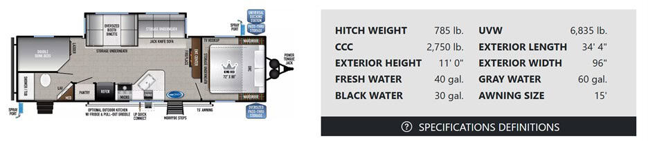 Sleep Options: Full bunks, king, jack knife sofa, dinette