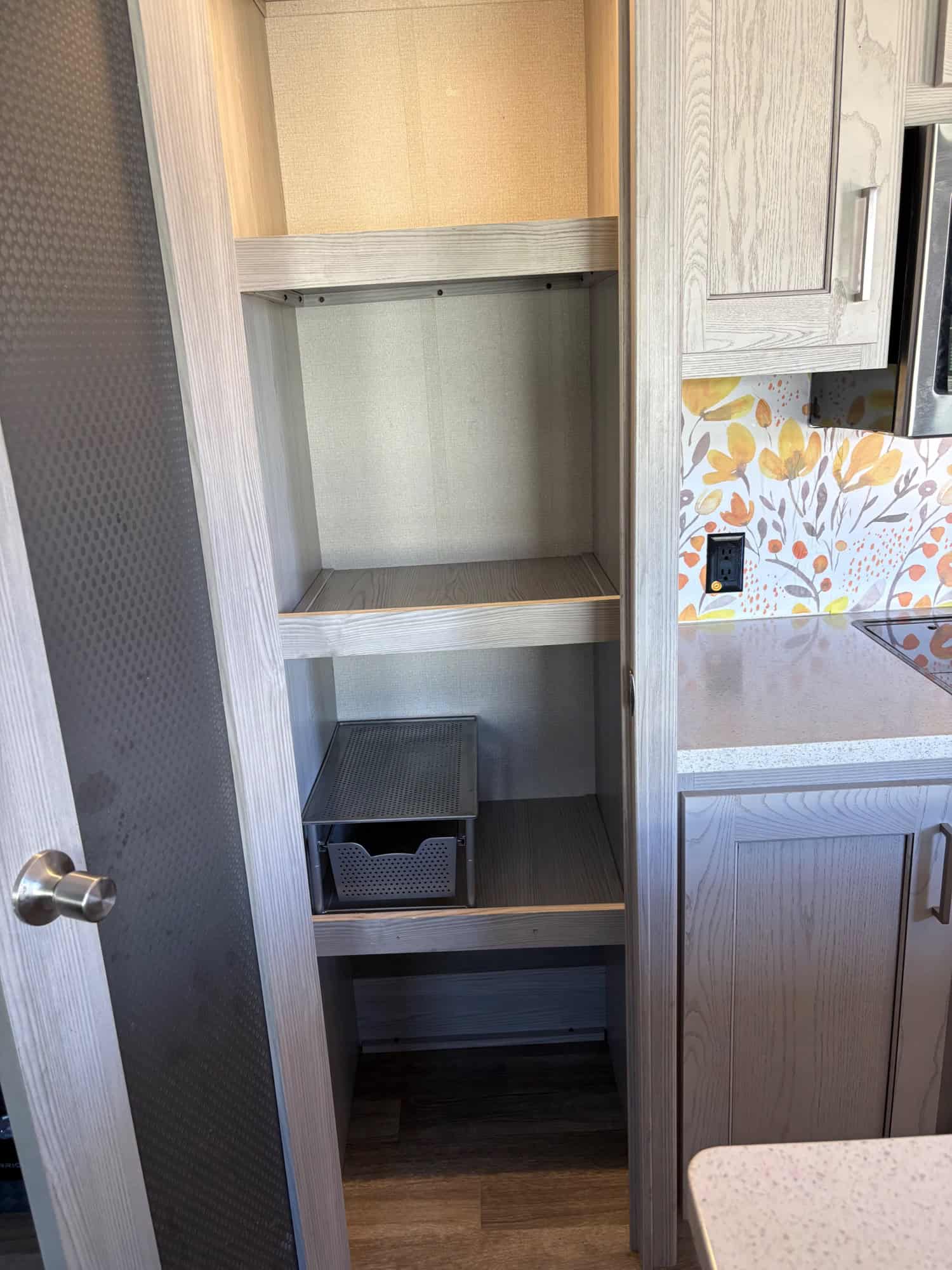 Both fridge & bathroom can be accessed with slides in. There are 3 slides, opposing living room slides & bedroom slide.