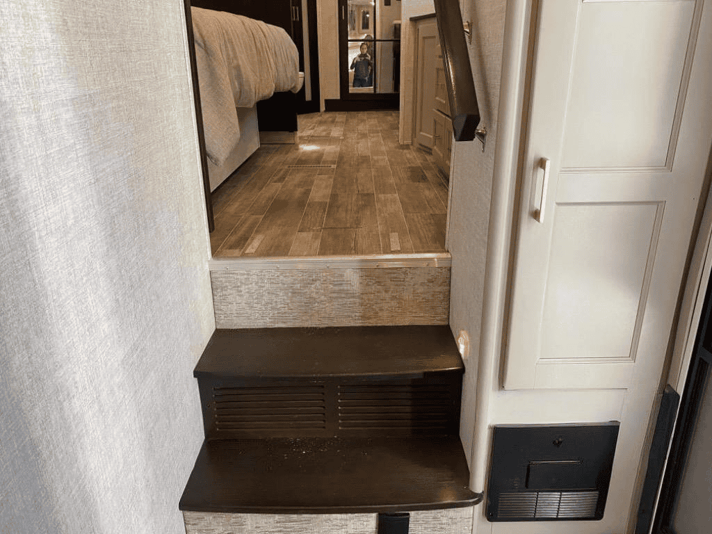 This Columbus 1492 fifth wheel is the epitome of comfortable living! This unit provides you with the greatest escape and a high level of luxury. You will be secluded away in your own master suite at the front of this unit, and all of your needs will be met with the dual-sink vanity, walk-in closet, 60" x 30" shower with teak wood seat, king bed slide, and 32" LED TV. The other extremely valuable feature in this model is the butler's pantry. This large pantry has a U-shaped countertop, overhead cabinets, and a wine cooler, and it is a valuable tool for entertaining while you are away. Another entertaining feature is the entertainment center back in the main living area, and the 88" tri-fold sofa will give you a cozy place to sit down with friends.