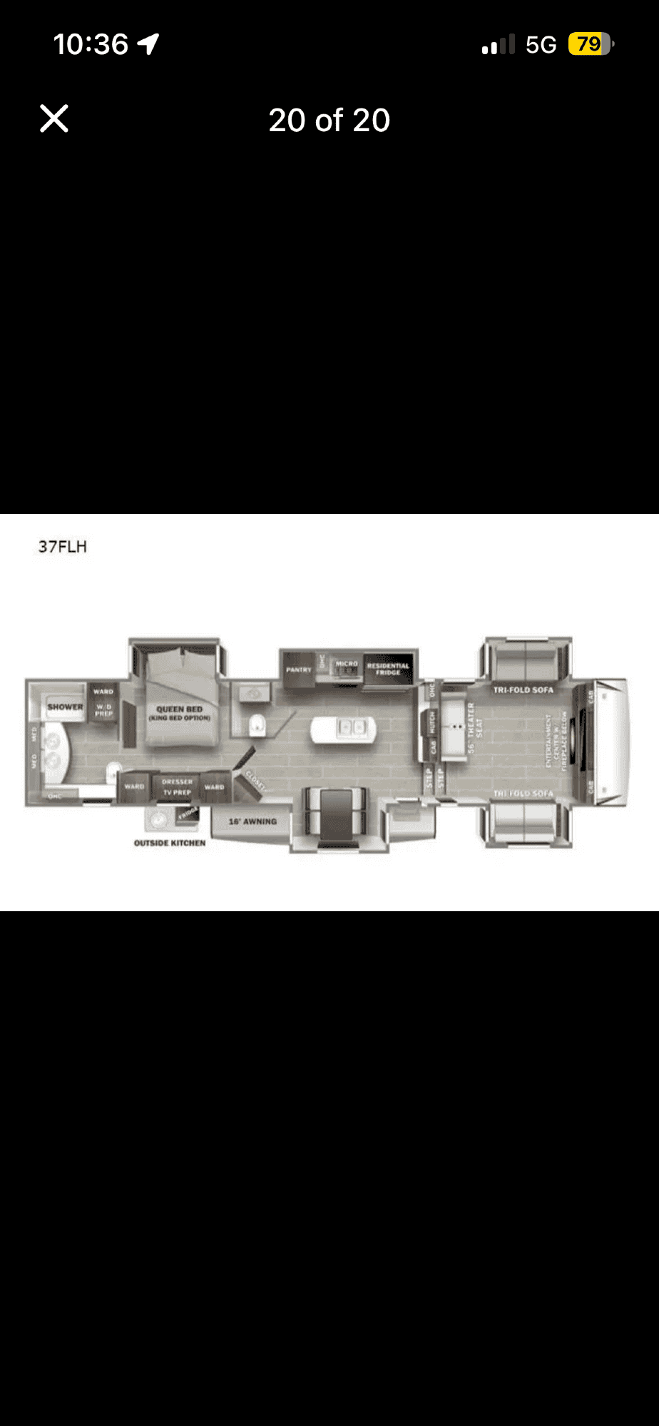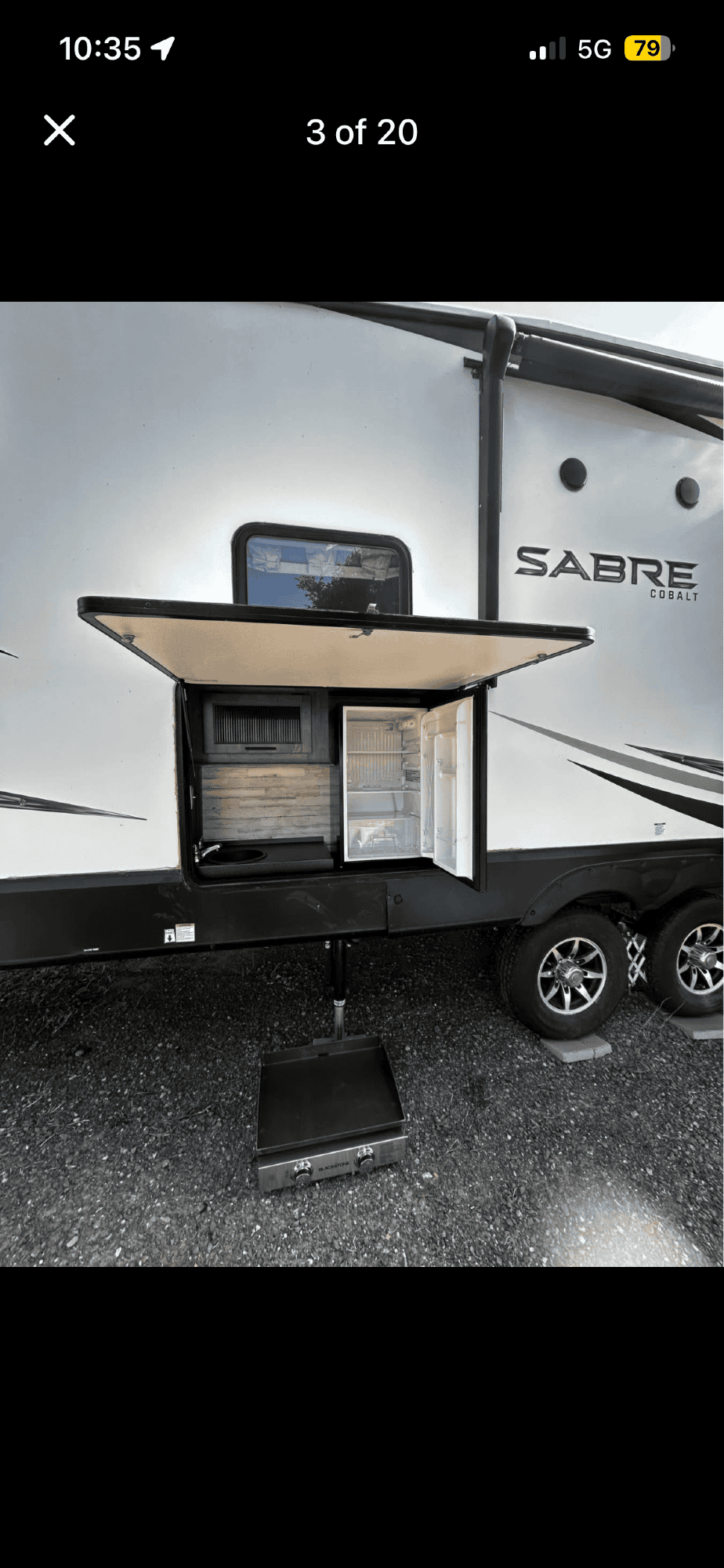 Beautifully kept 2021 Forest River Sabre 37FLH fifth wheel, with front living layout. 42 ft, 5 slideouts. Purchased in 2023 used from dealer to be lived in part time (low miles) Currently moving and no longer need this trailer. Roof is in great condition, dealer resealed before purchase. Everything works as it should and it has been very well maintained and clean. Options include All weather package, Dual ac units and propane furnace, Brand new splendid washer/ dryer stackable set in master bathroom closet, Residential size fridge (electric or propane) Propane Stove/oven, Solar panel (not currently hooked up), Auto leveling, Bluetooth compatible control center (lights, awning, slide outs) touch screen not working, easily connected to smart phone to operate, Indoor/outdoor stereo entertainment system, Outdoor kitchen with fridge,