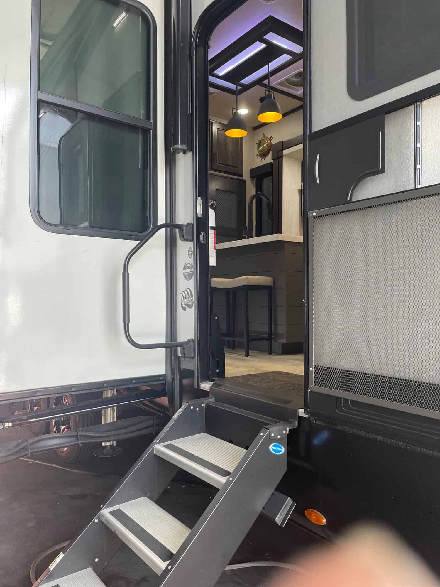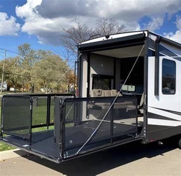 Highlights: 1 King, 2 Queen Beds, and 1 Bunk, 2 full Baths, Kitchen Island with Bar Stools, 12' 6" Separate Garage, Patio/Deck w/ Screen Enclosure. Stored Indoors. Very Lightly Used. Less Than 2000 Miles. Excellent Condition/Shows like New.