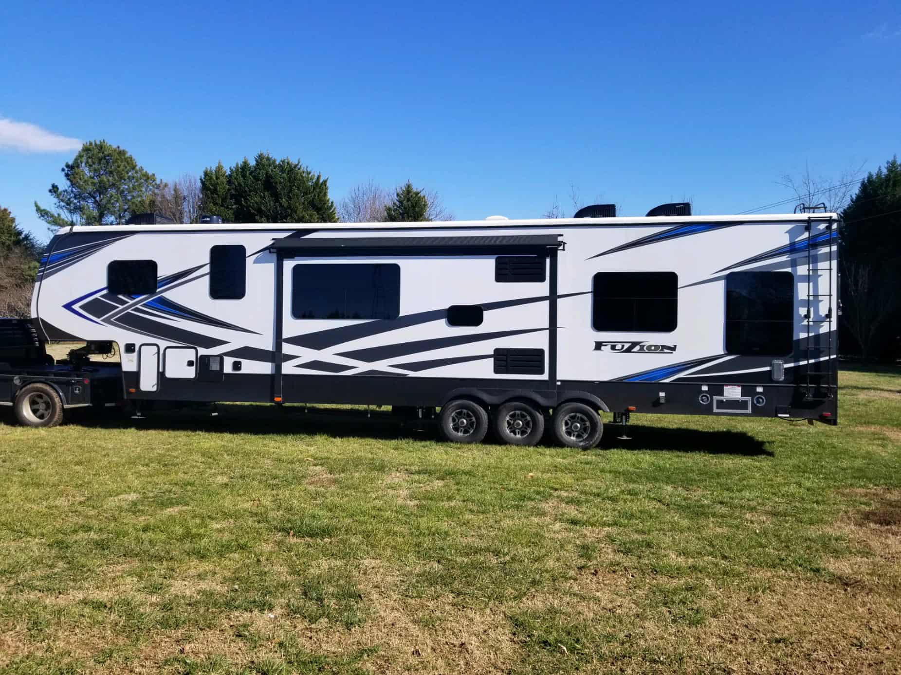2021 Fuzion toy hauler 429 with 12'6 " garage. 3 HVAC units, 12 volt dual compressor refrigerator Norcold conversion, 920 AH 2025 lithium battery with 5500 watt generator 23.0 hours, Upgraded RV king mattress in front master and other 3 mattress upgraded padding. RV combo locks on both entrance doors, 4 TVs and GenY fifth wheel upgrade pin box. TPS monitor on all axles and 2 side mounted cameras. Recent service on water heater, HVAC, generator, axles, and brakes.