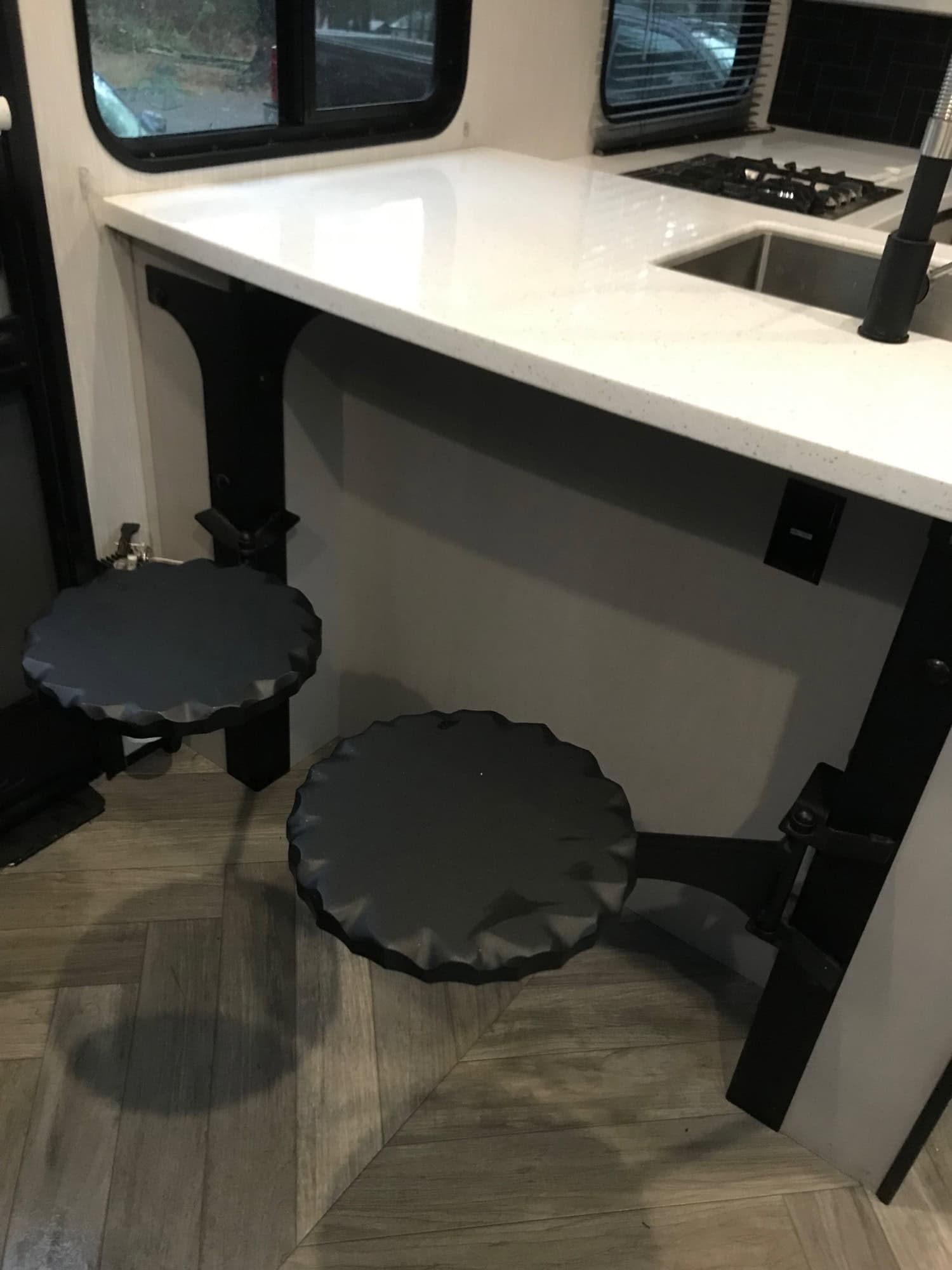Fuel station for fueling toys, Oman OG5500 generator, residential size refrigerator, king sized bed with power tilt, lots of cabinet space, outdoor kitchen.