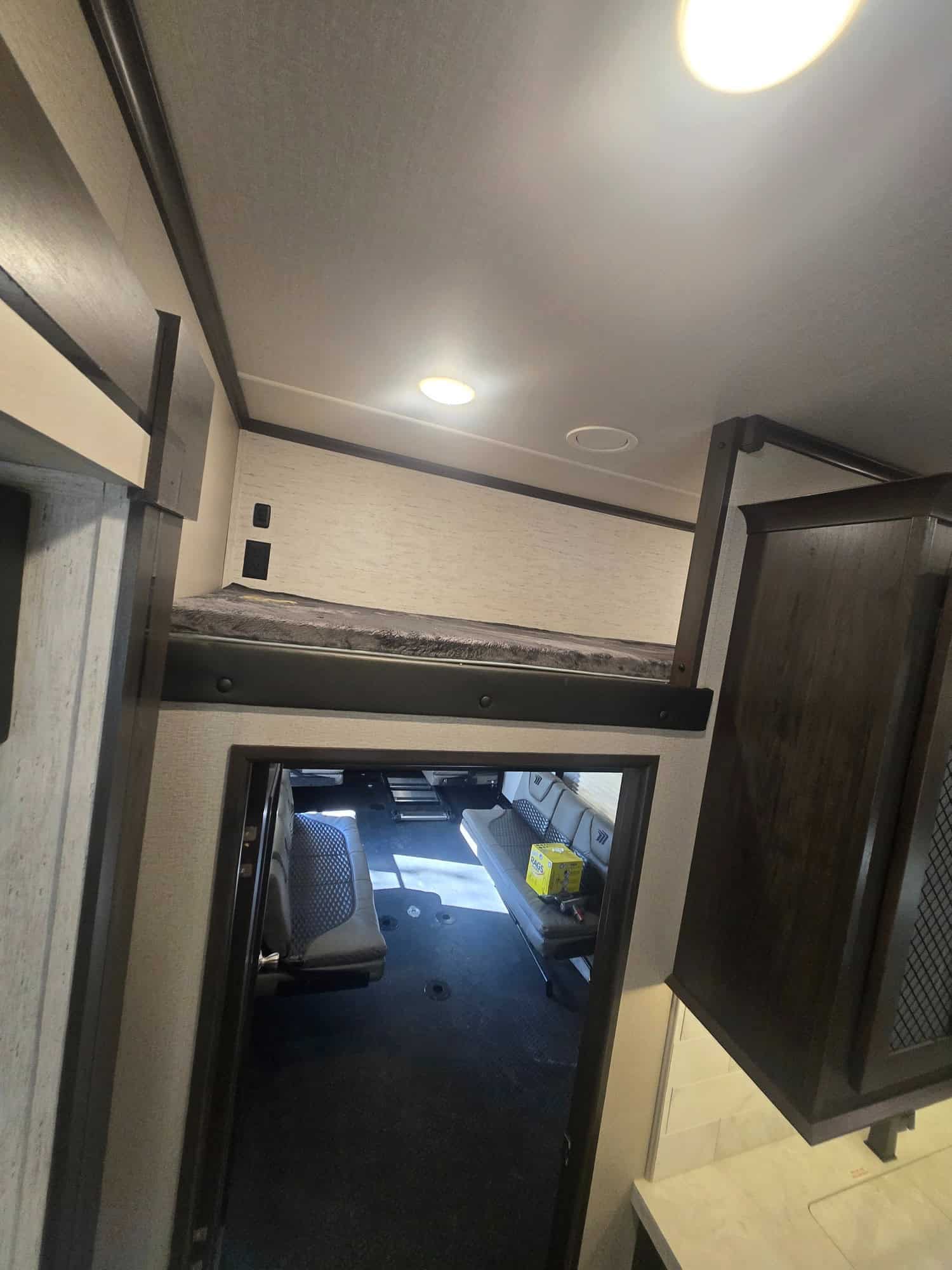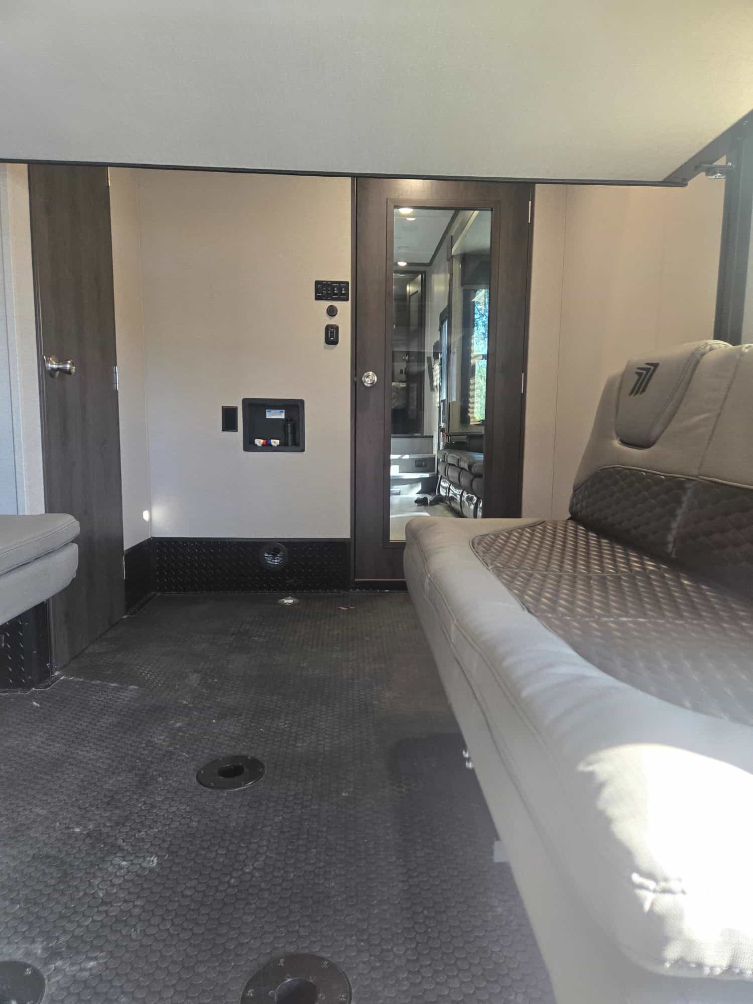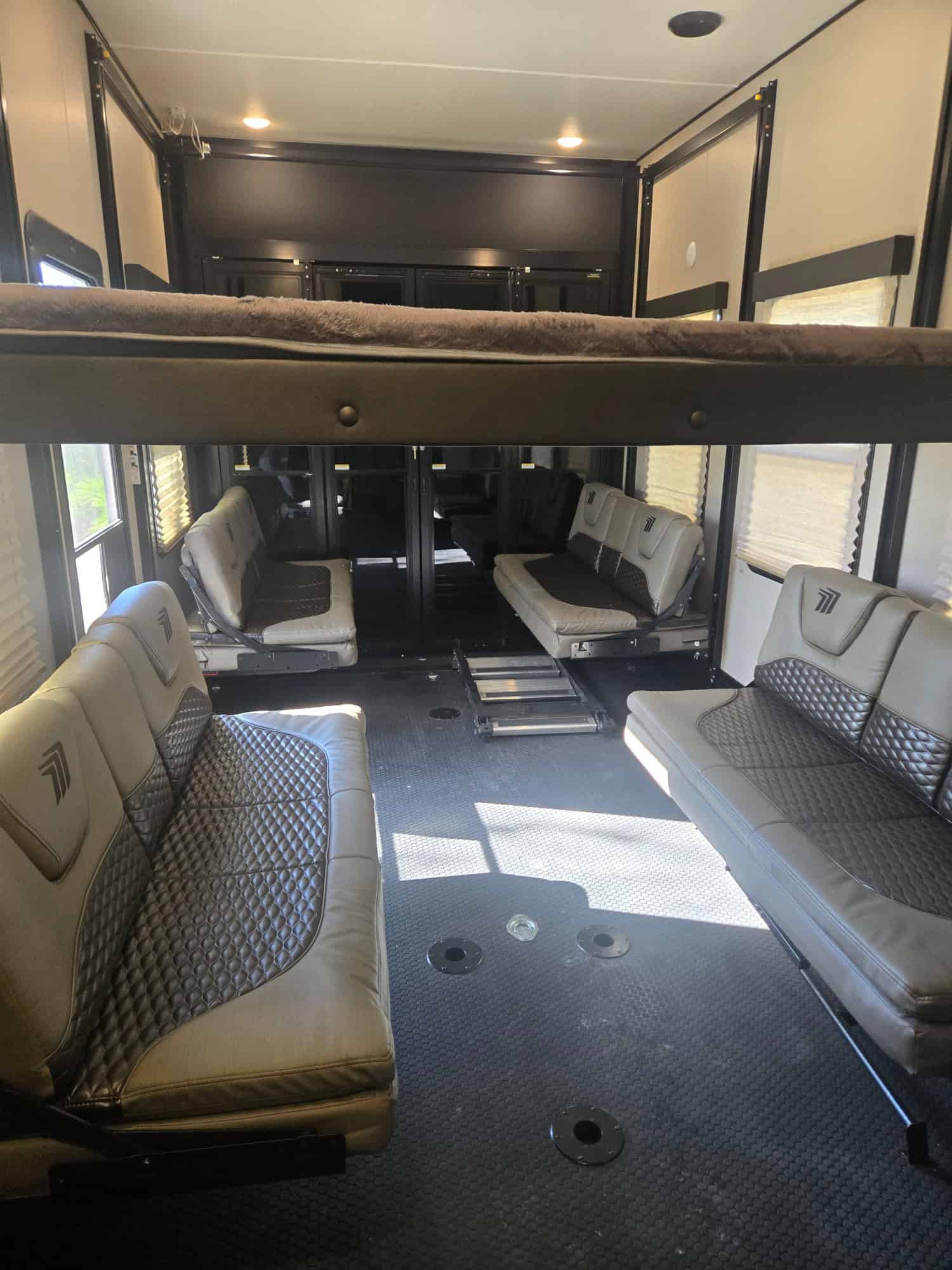 Garage: An 18-foot garage with dual bunks that convert to couches and optional half bath.
