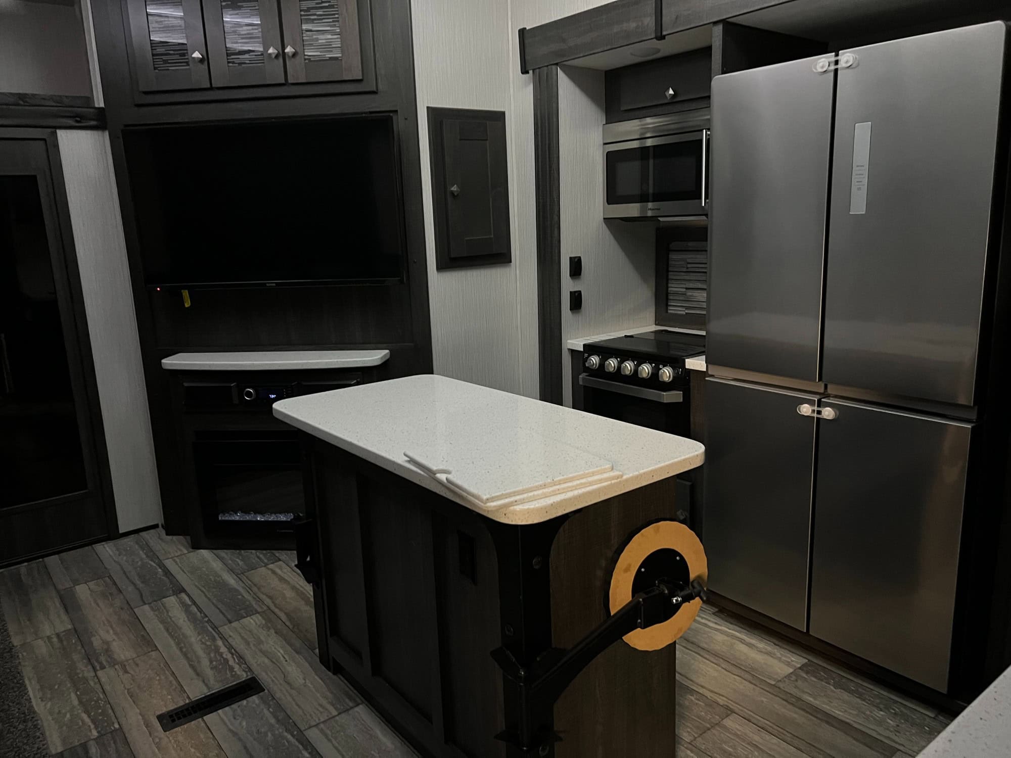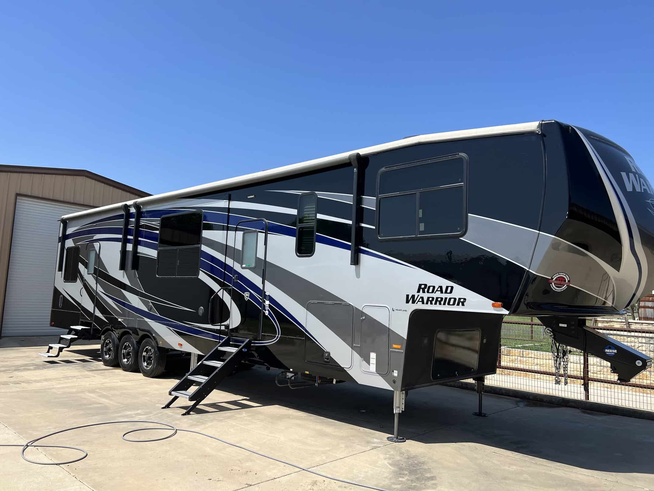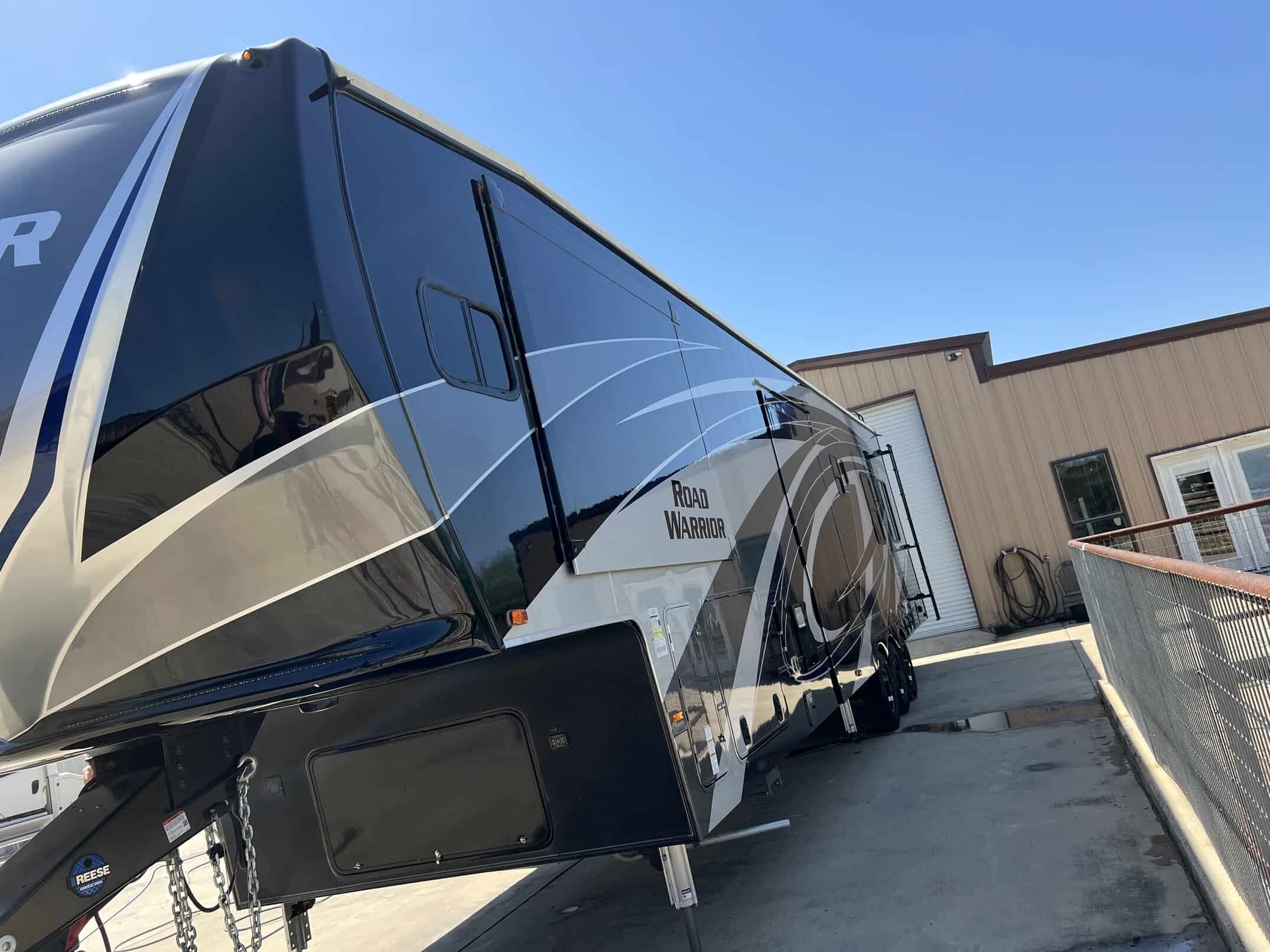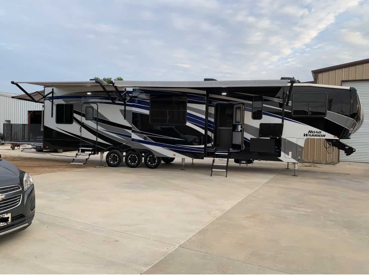 Road Warrior “Fighter pkg” Hardwood Cabinet Doors, Solid Surface Counter Tops, Stainless Steel Kitchen Sink & Faucet, 5.5 Onan Generator, Stainless Steel Oven, 30″ OTP Microwave, 18 Cu Stainless Steel Gas/Electric Refrigerator, 10 Gal DSI 110/12V Water Heater (20GPH) Washer/Dryer Prep, Cold Crack Resistant Flooring, Residential Style Furniture w/ USB Station, LED Lighting, 3-zone stereo w/Bluetooth, HDMI & 6 speakers, 5100 BTU Fireplace, Bottle Opener, 1 PC Fiberglass Shower with Glass Door, Mor-Ryde Step Above Entry Step, Hydraulic 6-pt Level up, G-range Tires, EZ Lube Dexter 7000# Axles, Nev-R-Adjust Brake Pkg, Mor-Ryde 3000 Suspension, 50 AMP Service, Battery Disconnect, U.D.C. w/Black Tank Flush & Exterior Shower, Heated Enclosed Underbelly, Spare Tire, Back-up Camera prep, Dual Power side Awning w/LED Light, 30 Gallon Fuel Station w/ 2nd 20 Gallon Aux Tank, 30,000 BTU Ac System, Folding Table, Backlit Main Slide Valance, Backlit Kitchen backsplash, Rear Garage Screen, ladder, 50″” Led Living Room Tv, Ramp Soor Patio, Rear Electric Patio Awning, 32″ Bedroom Tv, 40″ Garage TV, outside Tv, Central Vac, Full Body Paint, 21K Mor-Ryde Pin Box, 3rd AC with Heat pump, Residential Refer w/ Dual Batteries and Inverter, 3 season Removable Garage Wall, Ramp Door Patio Steps, extended warranty, RV Complete, used only a few times. 15ft Garage. Camper has been kept undercover in a building.