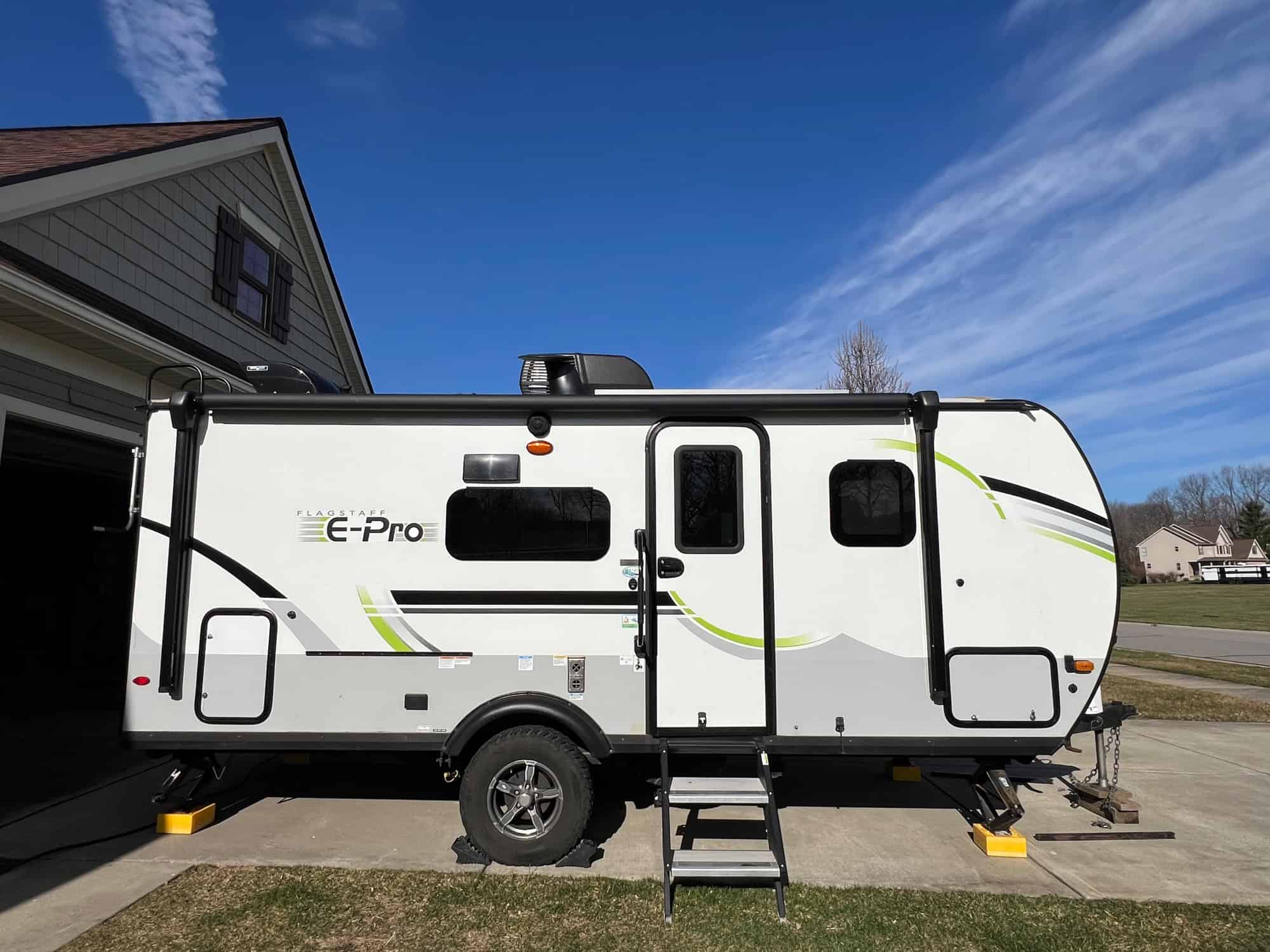 Excellent Condition, well cared for and maintained Flagstaff E-Pro with roomy rear bath. Trailer comes complete with heavy duty hitch, upgraded Bluetooth AC Controller, hybrid mattress, added rear rack, front window tonneau cover, three Furrion Cameras, exterior dealer applied coating and interior fabric protection. Bearings have been re-packed 2023, front jacks have been changed to heavy duty stabilizers. Will sell this trailer with 11.5’ Clam Gazebo tent, Sky Model (Can be seen on Amazon, $588).