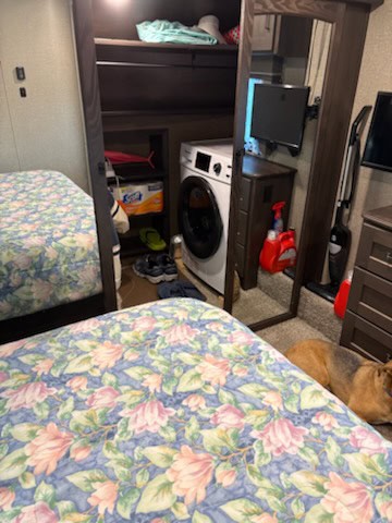 Price drop to $51,495 or best offer.Includes all accessories (hoses, sewer lines and supports, water pressure gauge, 50 Amp ground fault, wheel locking chocks, tripod stabilizer, extra stabilizers, blocks, etc.) 2 AC units, MORryde hitch, toppers on 3 slide outs, all-in-one washer/dryer, stainless steel appliances, exterior spray-on protective coating, regular yearly maintenance, axle service just done, no rust or body damage, overhead vent hoods, low mileage, tires good (spare never used), no leaks, comfortable and very good condition.Total brake job (all new parts) just done in December 2025.