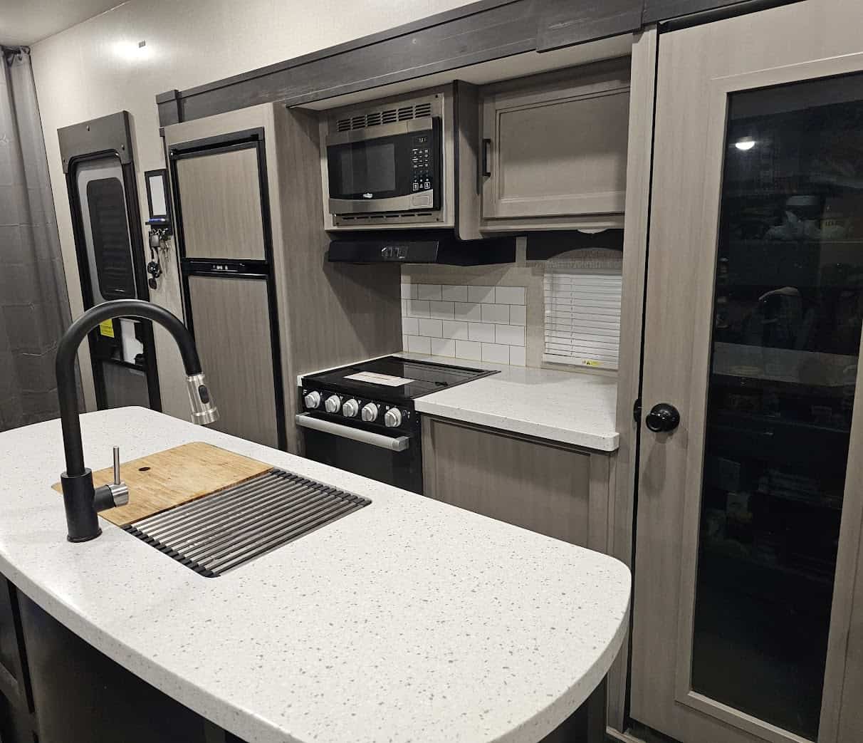 Bunk room – removed door and installed curtain; small ink stain on sofa (see picture); sofa and bunk were never slept on; added padding to the steps.