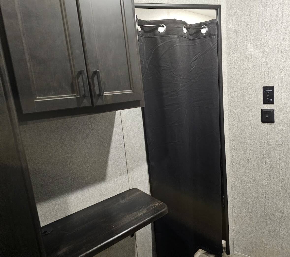 Bedroom – small hole in wall and on side of cabinet; removed door and installed curtain (door is included and can be re-installed); added tv mount and Roku tv.