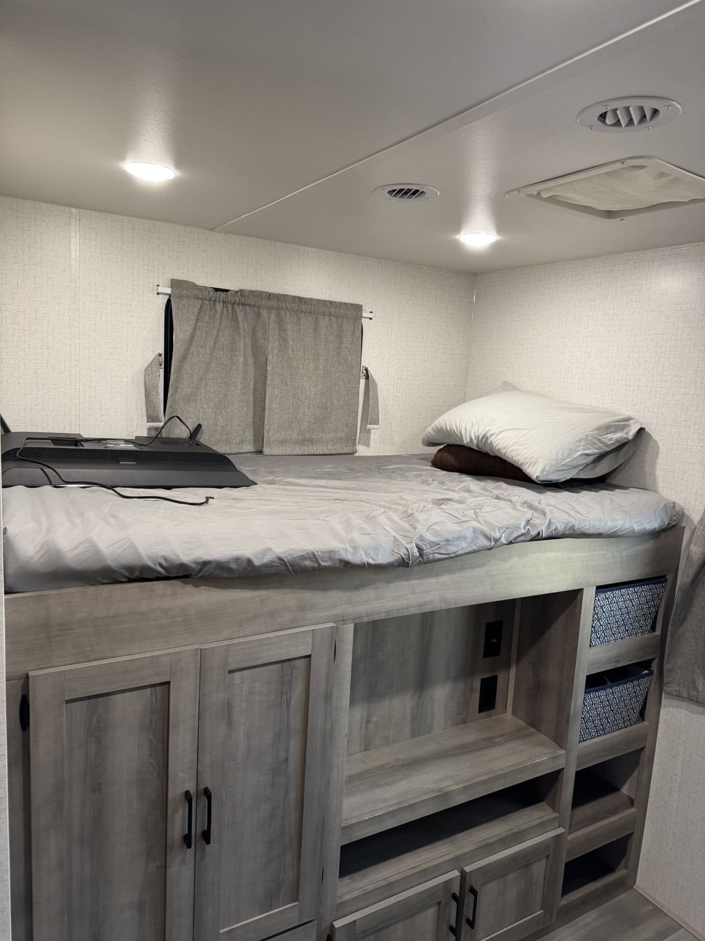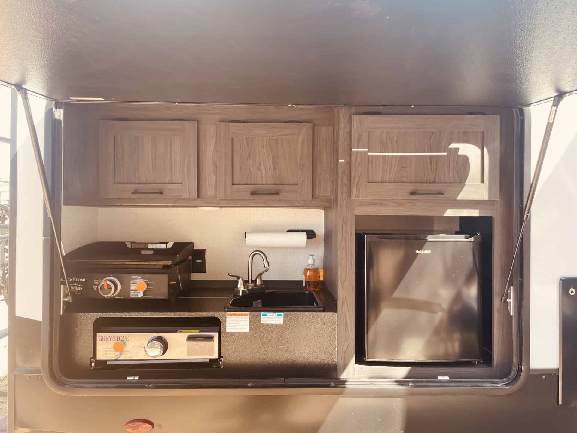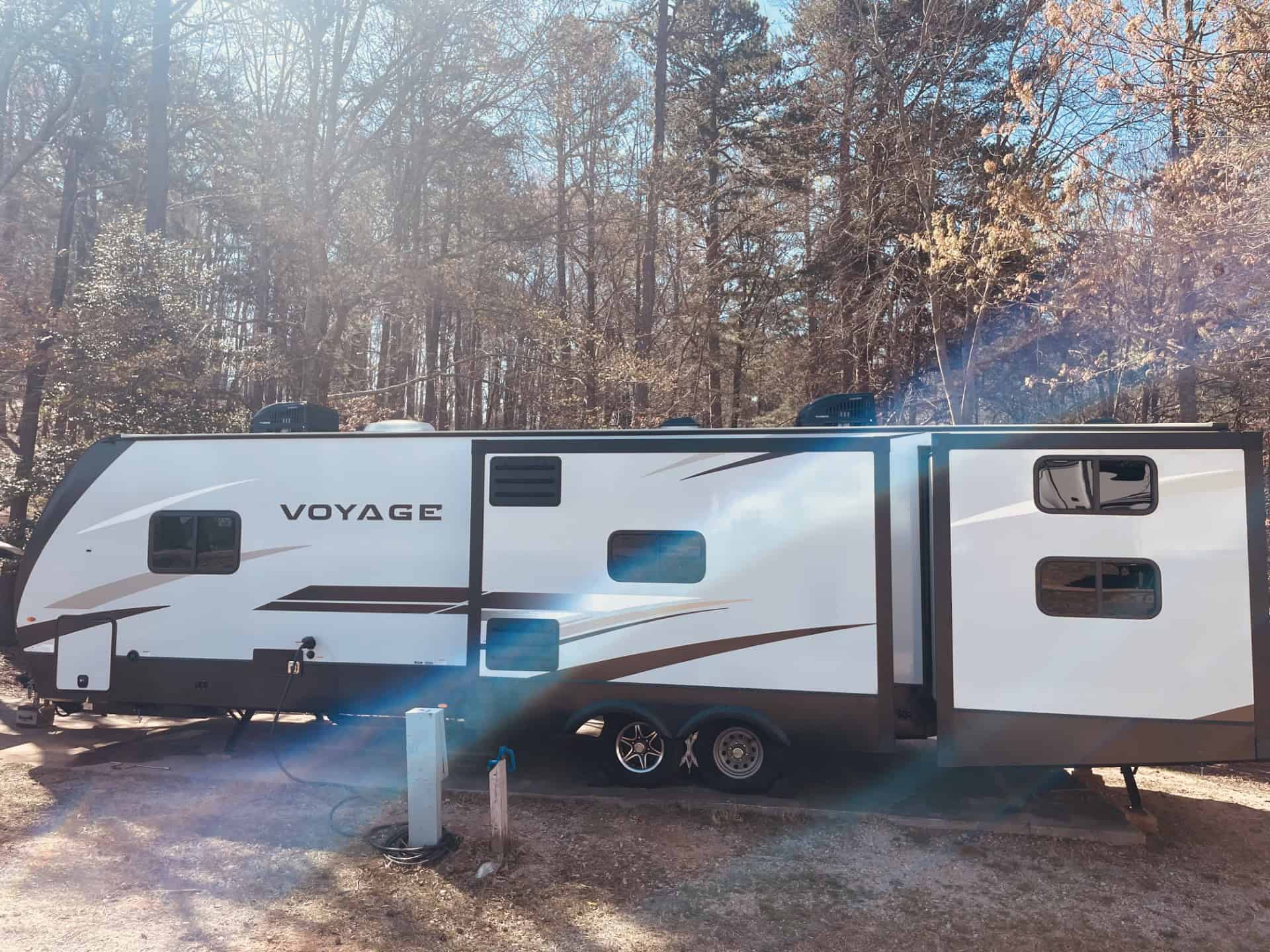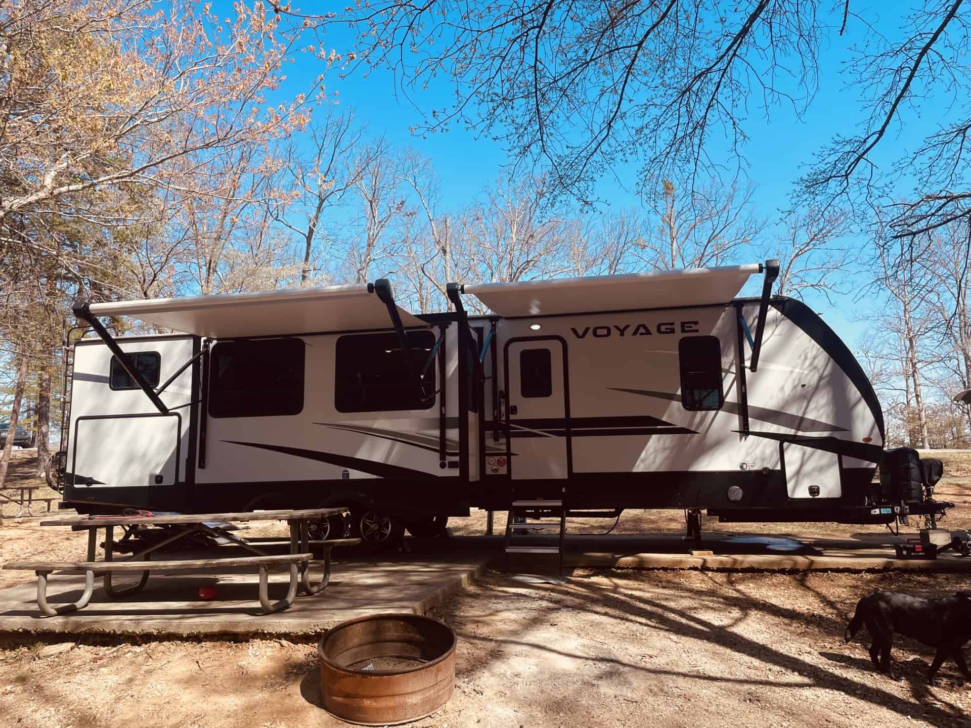 Looking for the perfect home on wheels? This 2022 Winnebago Voyage 3538BR is everything you need and more for unforgettable family adventures. At nearly 39 feet long and with three spacious slide outs, this travel trailer comfortably sleeps up to 7 people and offers all the comforts of home. The master bedroom features a king-sized bed, while the rear bunkhouse includes two bunks and a fold out couch perfect for kids or guest. The fully equipped kitchen includes a galley island, large pantry , and is stocked and ready for your next trip! Enjoy outdoor living with a built-in kitchen complete with a mini fridge, sink, Blackstone Grill and small propane grill ideal for outdoor meals and entertaining under two large 10′ awnings. Stay comfortable year-round with two A/C units (15,000 BTU main unit and a 13,500 BTU bedroom unit) , furnace, electric fireplace and a heated enclosed underbelly. It also comes solar equipped with a roof mounted panel to keep you powered even off the grid. Additional highlights include washer/dryer hookups, a 10-gallon water heater (propane or electric), power stabilizer jacks, an electric tongue jack and included hitch and sway bars. The RV also offers ample tank capacity with a 60-gallon freshwater tank, a 49-gallon black tank, and three 49-gallon grey tanks. With a dry weight of 9,626 lbs., its towable and ready to go! This RV has been exceptionally cared for and always stored covered.