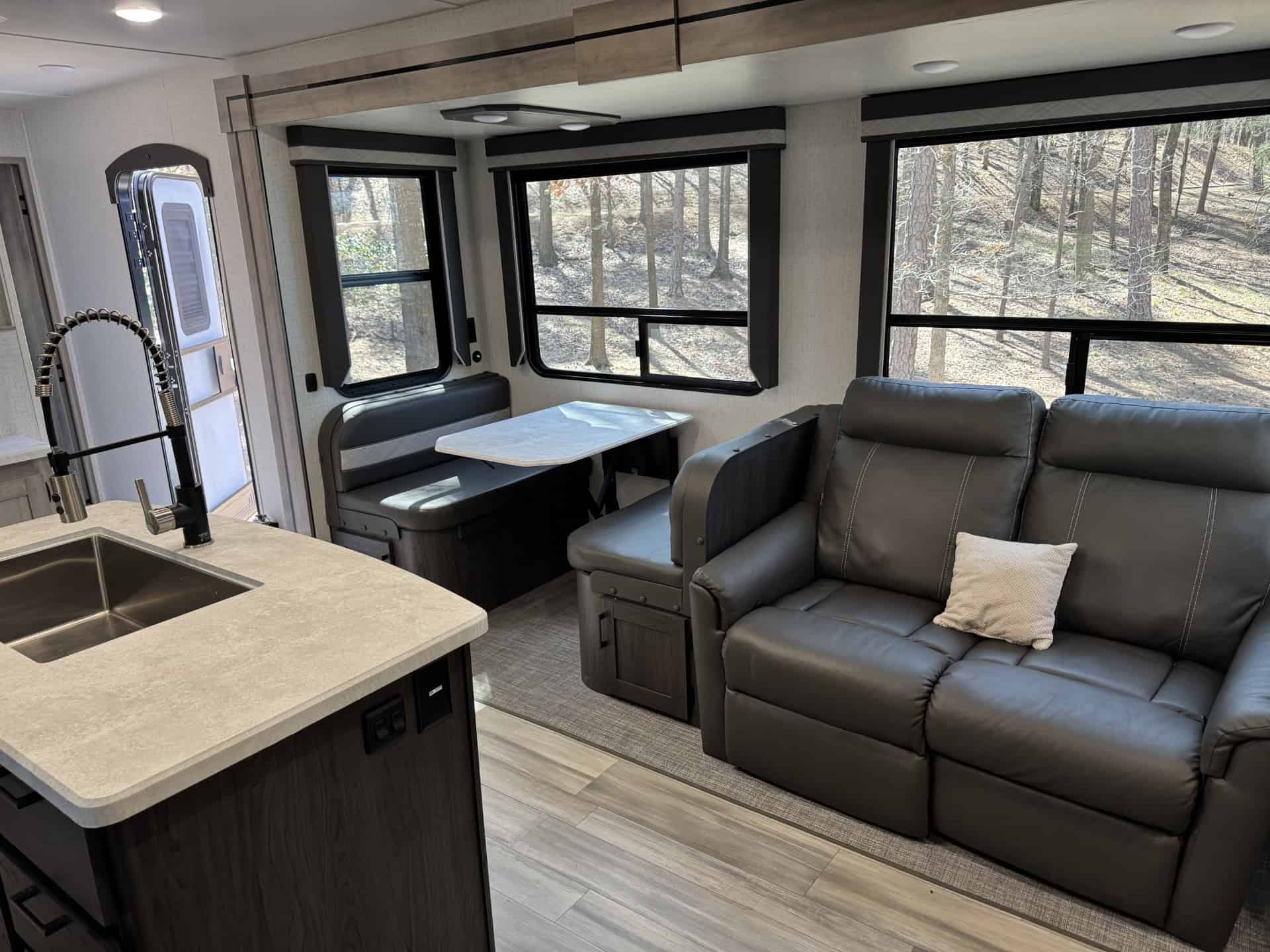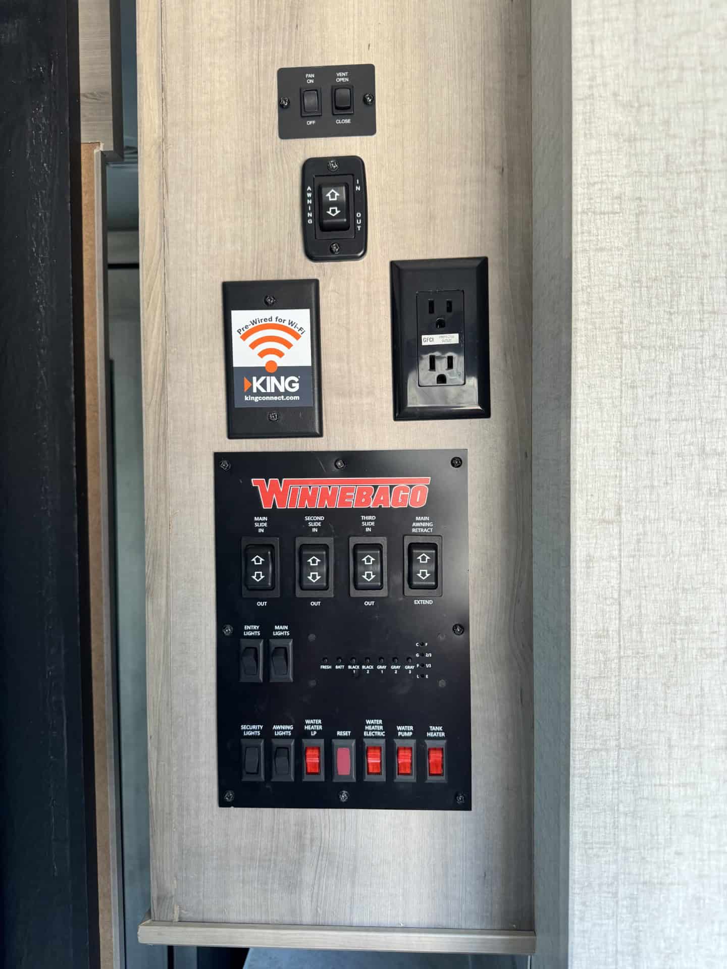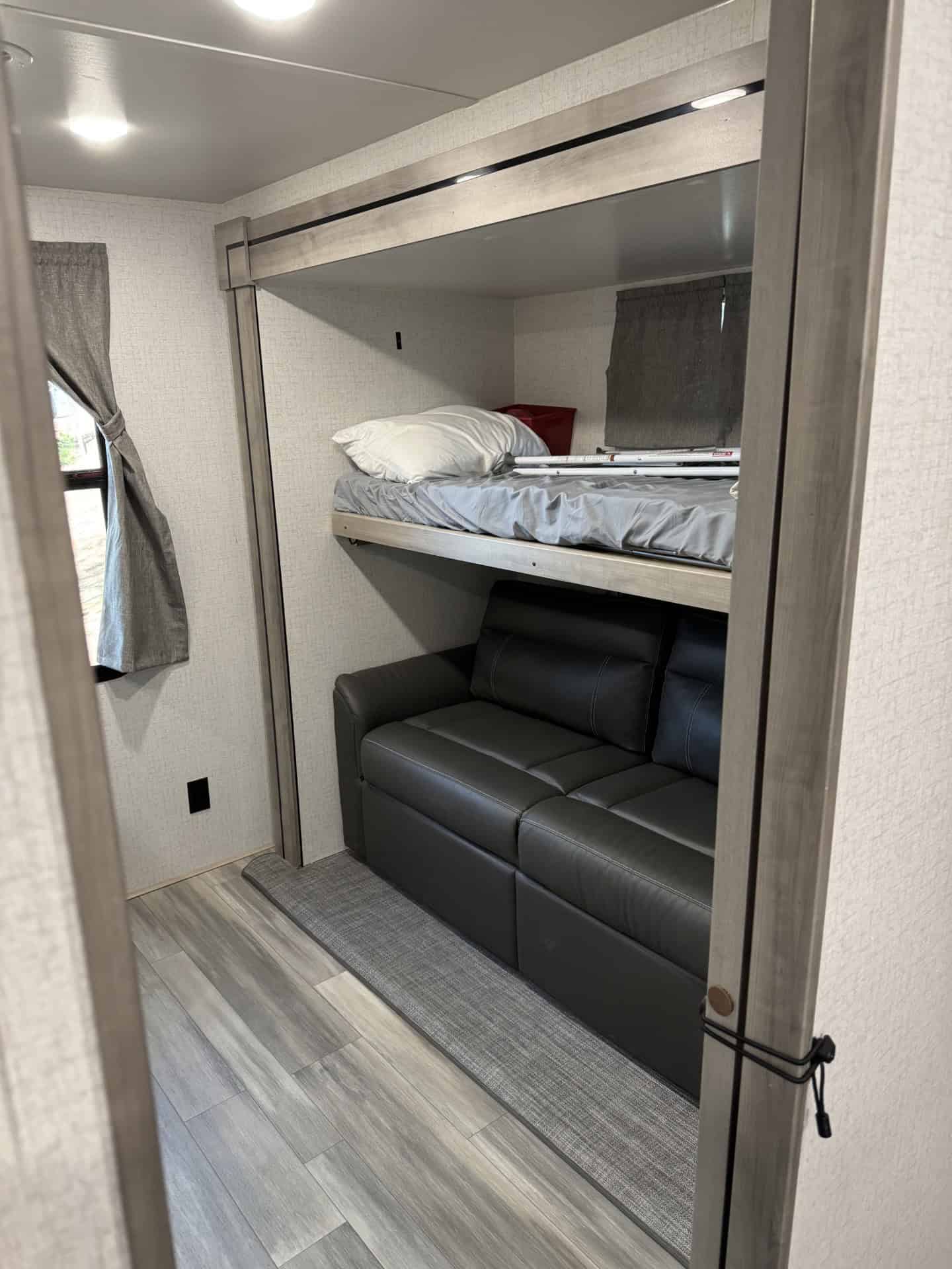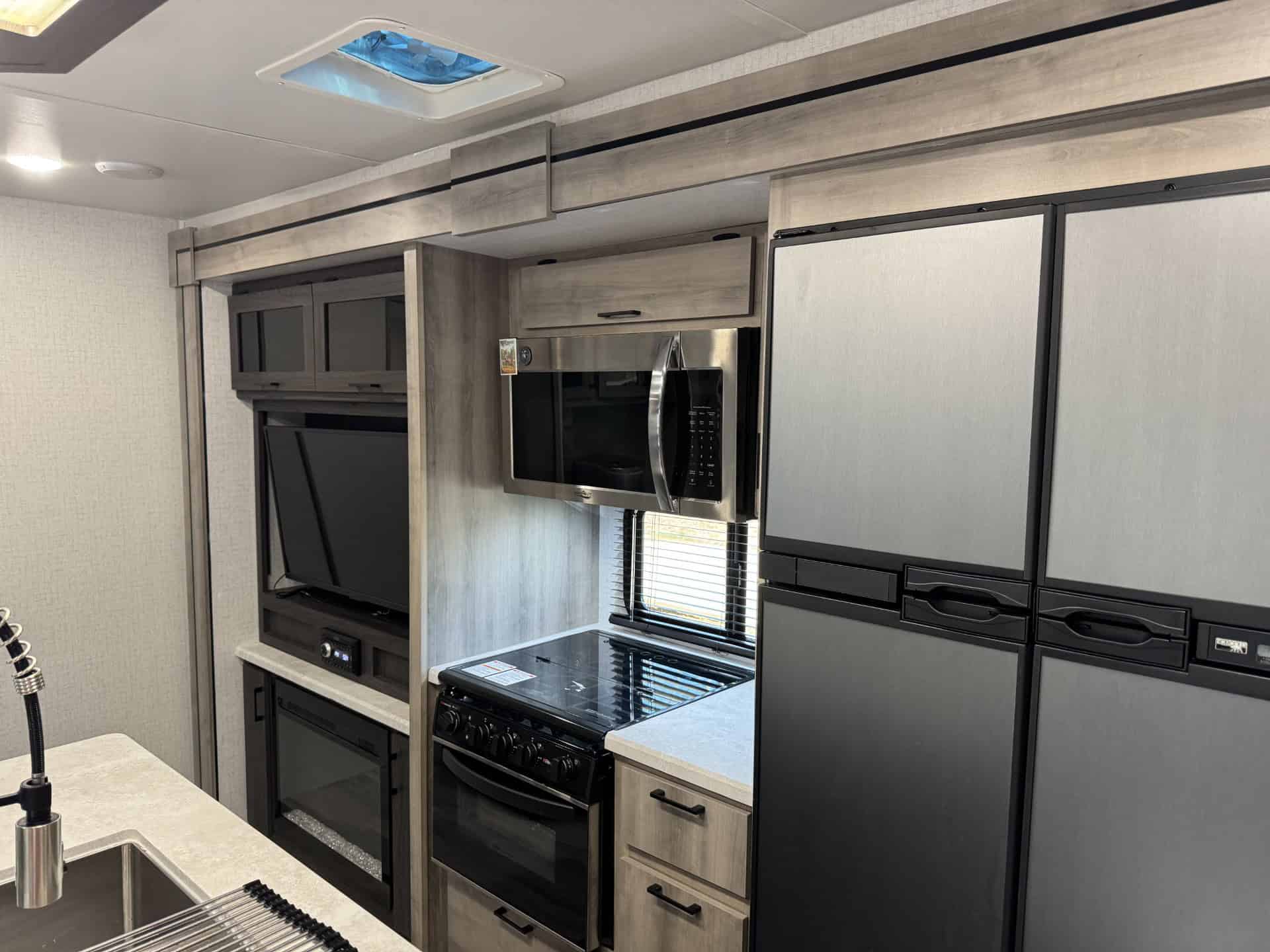 Looking for the perfect home on wheels? This 2022 Winnebago Voyage 3538BR is everything you need and more for unforgettable family adventures. At nearly 39 feet long and with three spacious slide outs, this travel trailer comfortably sleeps up to 7 people and offers all the comforts of home. The master bedroom features a king-sized bed, while the rear bunkhouse includes two bunks and a fold out couch perfect for kids or guest. The fully equipped kitchen includes a galley island, large pantry , and is stocked and ready for your next trip! Enjoy outdoor living with a built-in kitchen complete with a mini fridge, sink, Blackstone Grill and small propane grill ideal for outdoor meals and entertaining under two large 10′ awnings. Stay comfortable year-round with two A/C units (15,000 BTU main unit and a 13,500 BTU bedroom unit) , furnace, electric fireplace and a heated enclosed underbelly. It also comes solar equipped with a roof mounted panel to keep you powered even off the grid. Additional highlights include washer/dryer hookups, a 10-gallon water heater (propane or electric), power stabilizer jacks, an electric tongue jack and included hitch and sway bars. The RV also offers ample tank capacity with a 60-gallon freshwater tank, a 49-gallon black tank, and three 49-gallon grey tanks. With a dry weight of 9,626 lbs., its towable and ready to go! This RV has been exceptionally cared for and always stored covered.
