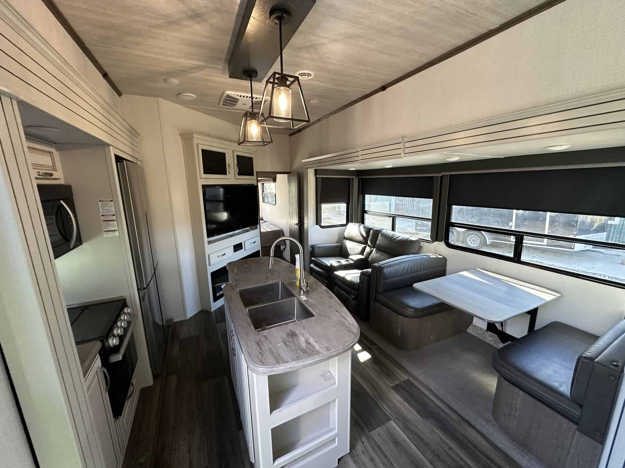 Inside, the 364BHL boasts a spacious interior with plenty of room for relaxation and entertainment. The living area features plush seating, a large flat-screen TV, and a cozy fireplace, perfect for cozy nights in. The kitchen is equipped with modern appliances, ample storage space, and a large dining table for enjoying meals together.