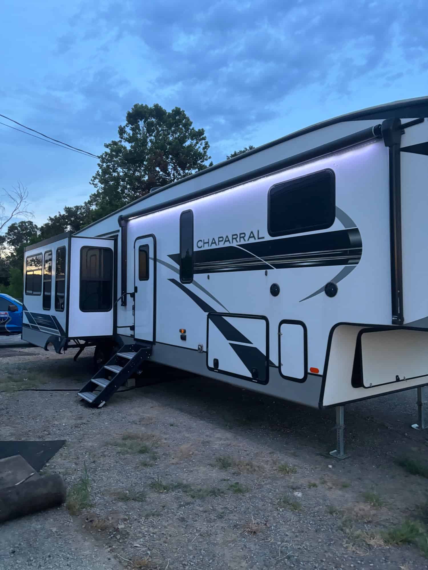 Very clean unit with plenty up space. Sleep up to 8. Full washer and dryer. 4 slides. Heated and massage chairs. One owner with no pets or smoking. Just don't use as much as we thought we would.