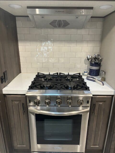 Add in TPMS, bedroom TV, 6-point hydraulic leveling system, generator prep, solar prep, 17.5″ Cooper tires, roller shades and electric fireplace and WOW!