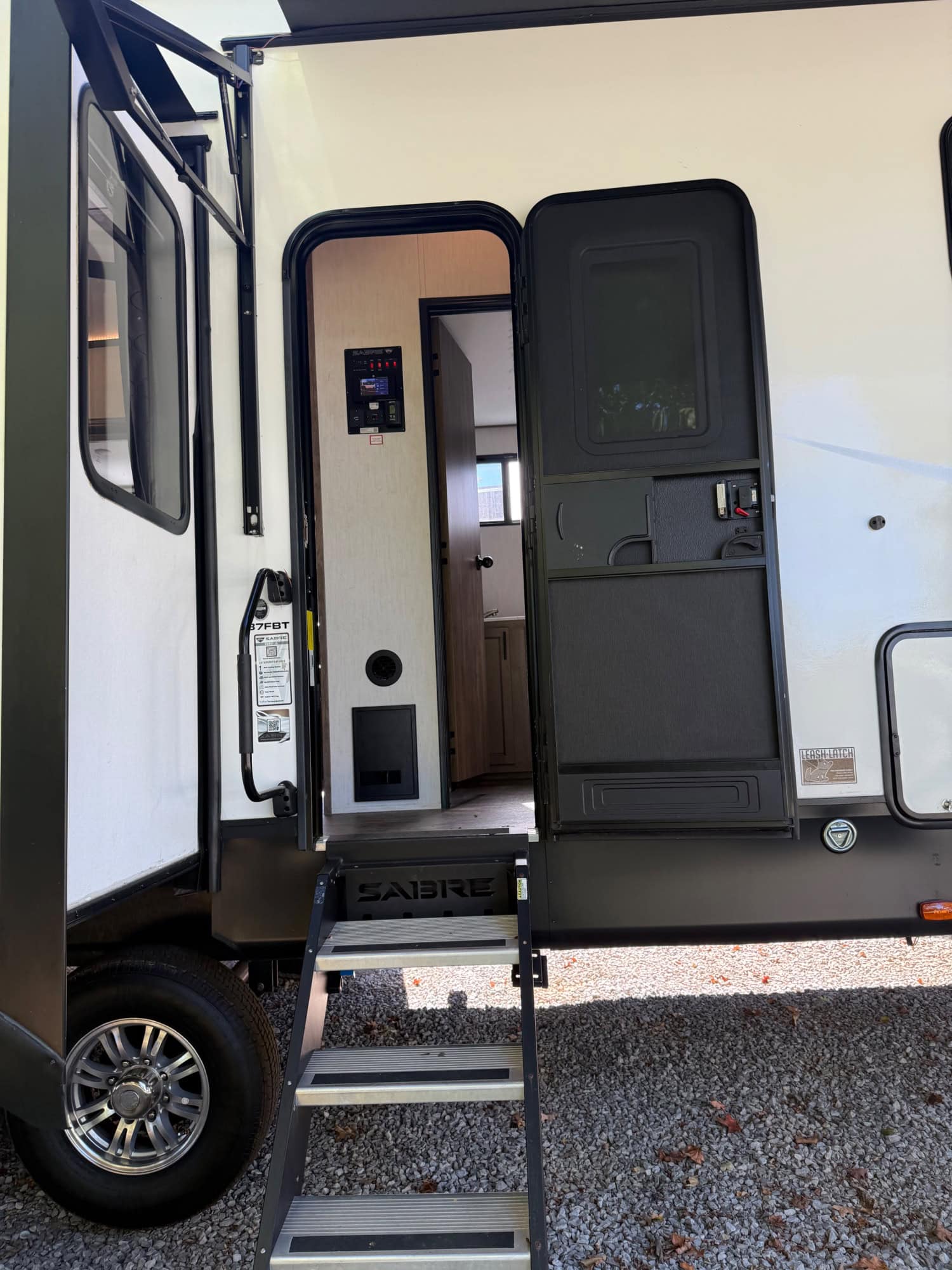 The price includes all equipment we bought for RV living as well to get you started, or to supplement what you already have. Equipment includes 2 20ft sewer hoses, a y connector, 2 water hoses (one is heated), water pressure gauge/regulator, water filters, propane gauges, leveling kit, tire chalks, an extended 50ft 50amp power cable, surge protector, extendable ladder, step stool, and other small useful pieces of equipment. Lastly, if you have a RAM truck you’re using to pull, we can discuss the B&W fifth wheel hitch that is brand new we are willing to sell as well. Feel free to reach out with any additional questions, we look forward to hearing from you!