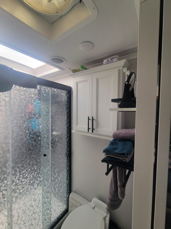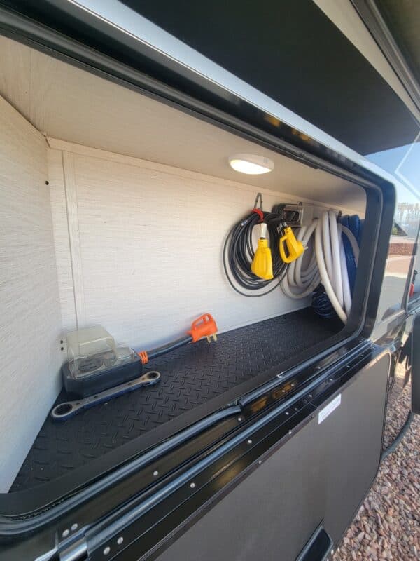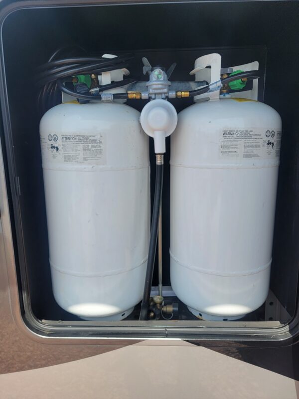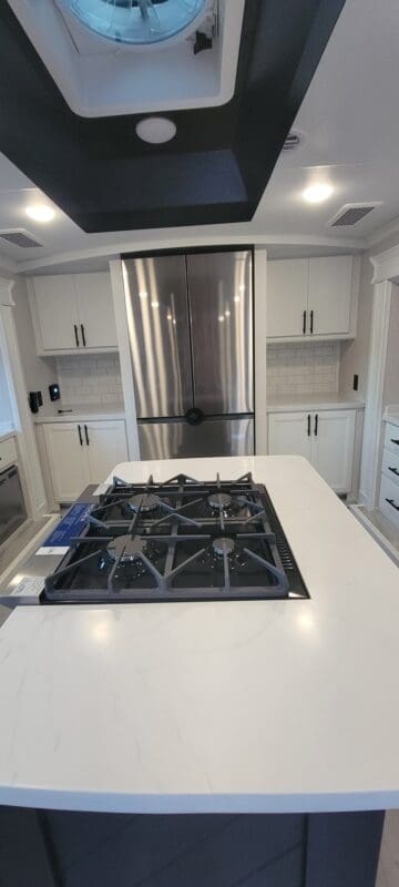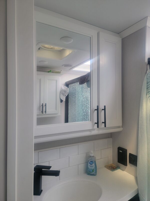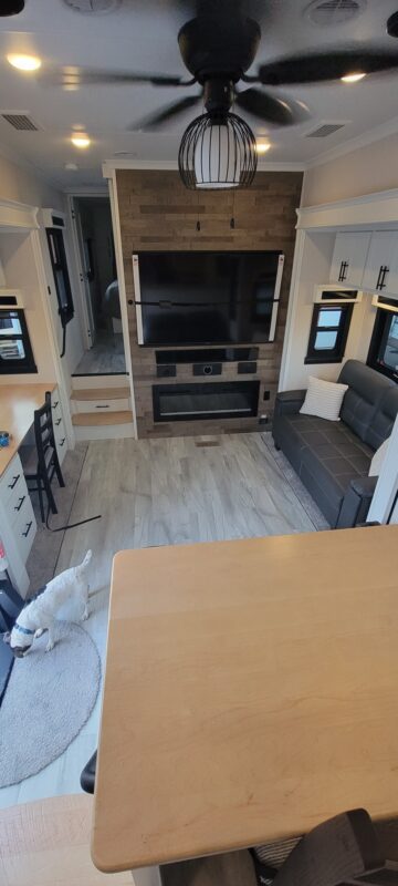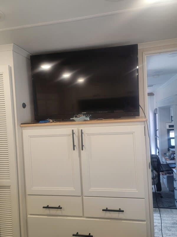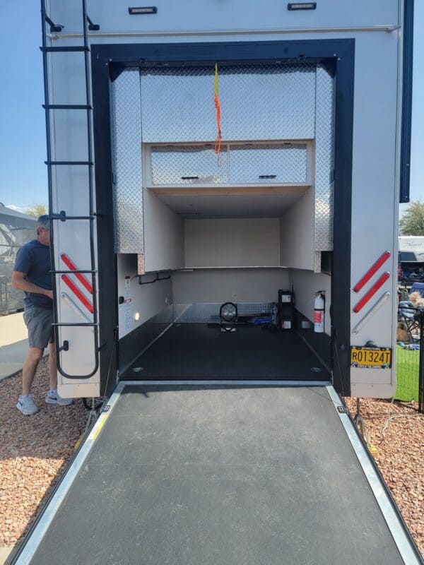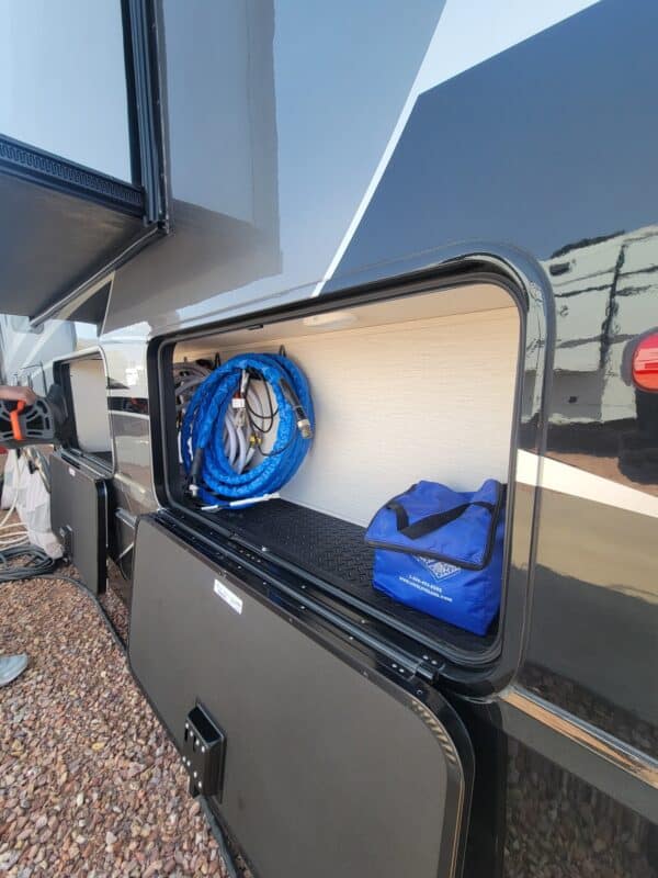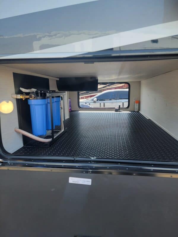 Full Body Paint | Triple MORryde Axels | 3 Solar Panels | 4 Batteries | 17.5 Goodyear tires | Onan 5500 LP Generator | Garage unit for your side by side, motorcycles, bikes or golf cart or just extra storage | Washer & Dyer | Dishwasher | Residential Refrigerator | Residential 4 burner stove with full size oven | Outdoor TV | Backup and side camera’s | over the door camera | Custom built in Desk/Work area | 3 A/C units | 2 Full Awning’s | Slide Covers on all 5 slides with metal weather shields | Awning Screen Shades for both Awning’s | MSRP was $203,916