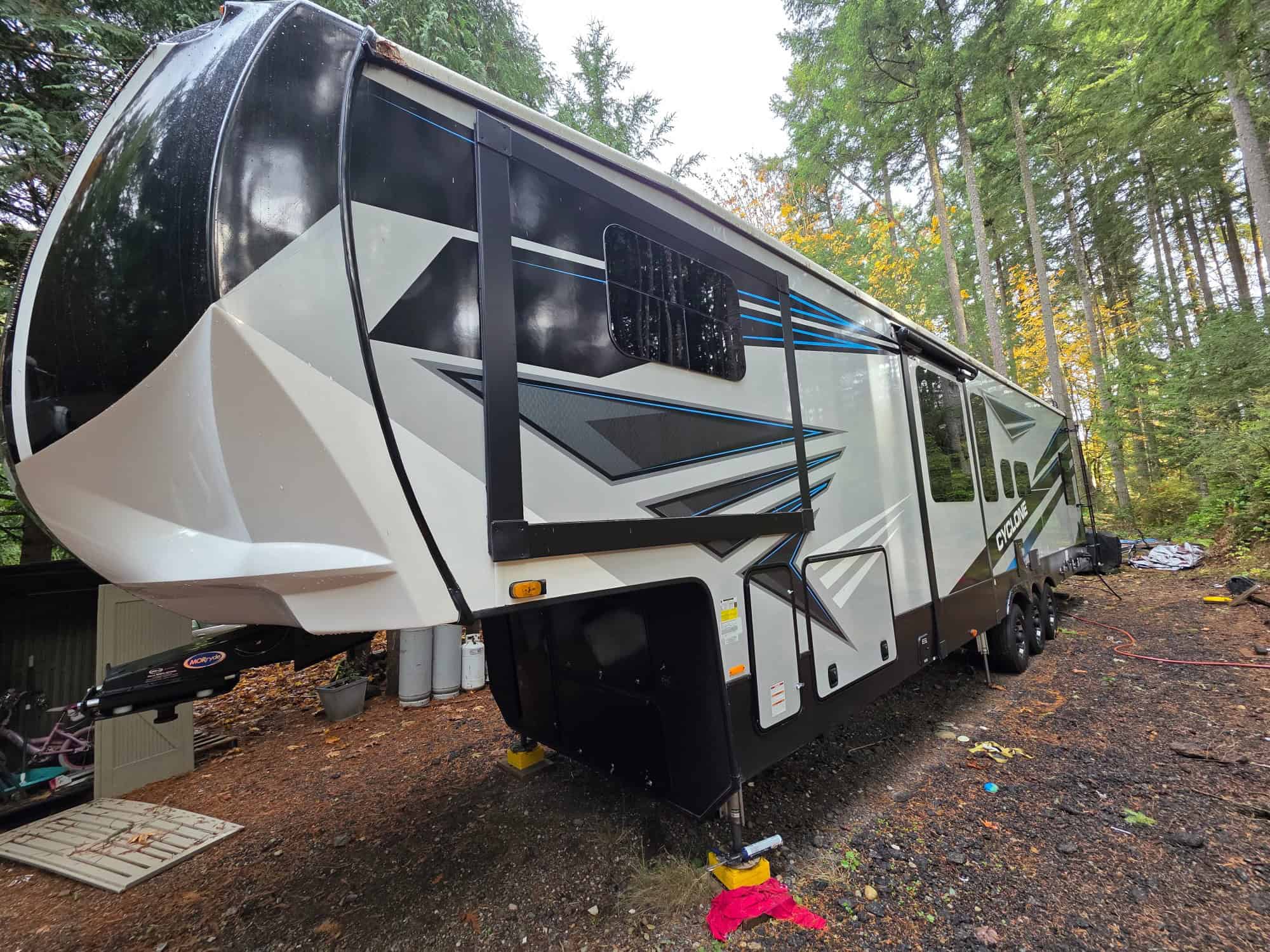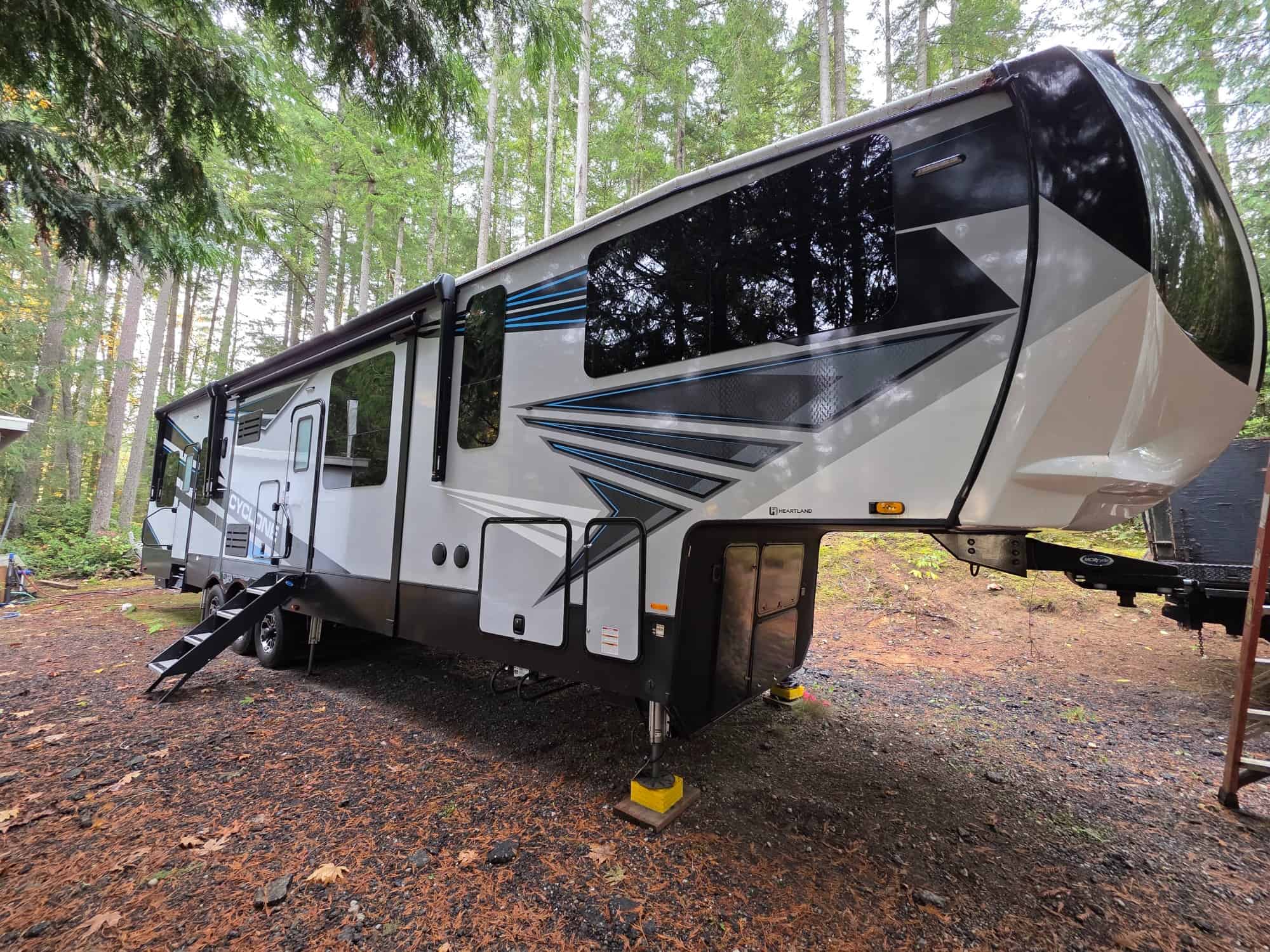 With a sleek exterior design and rugged construction, the Cyclone is built to withstand the rigors of the road while still turning heads at the campground. The interior features top-quality materials and finishes that give it a high-end feel, making it a true home away from home.