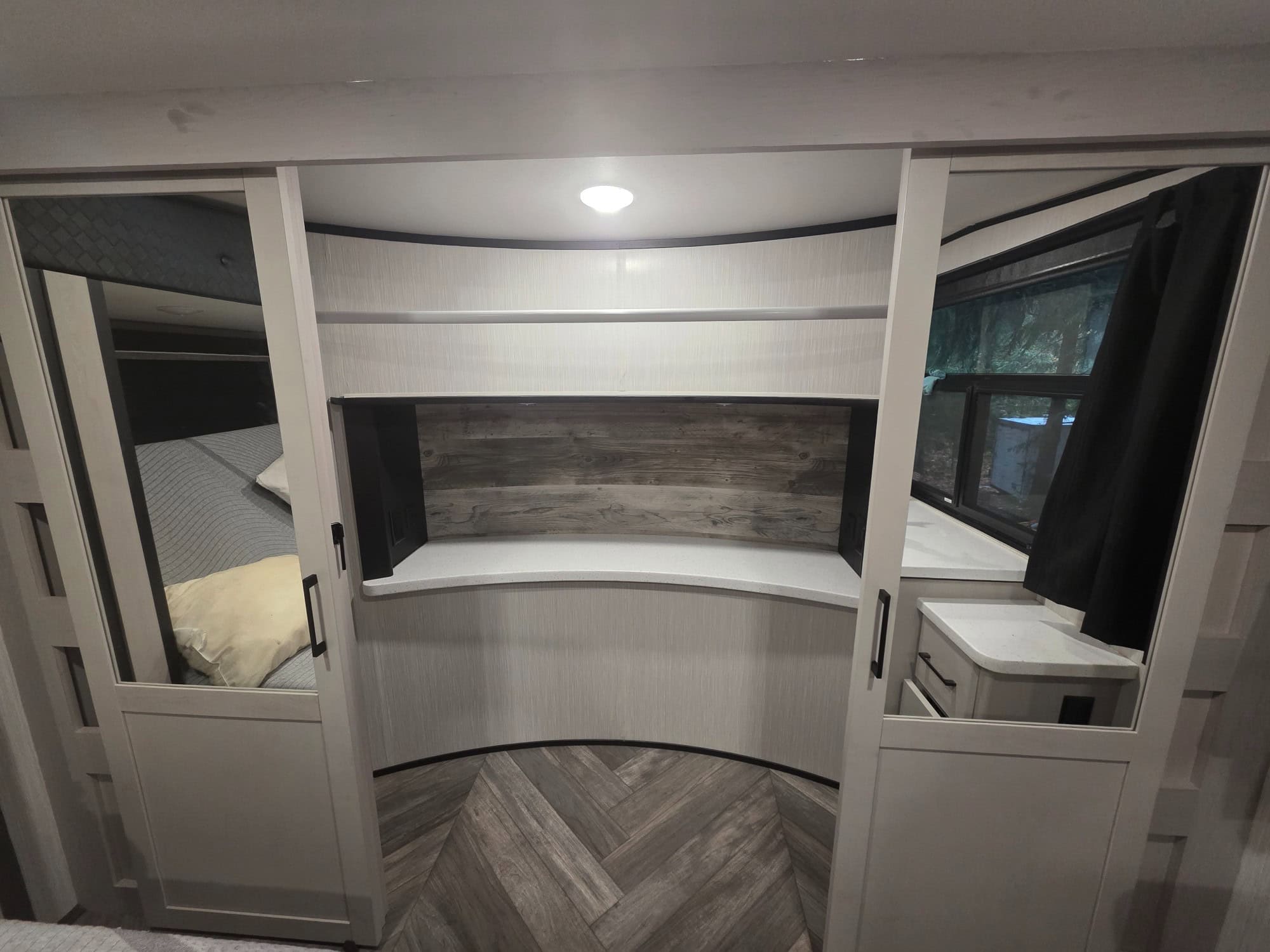The bedroom is a relaxing oasis, with a comfortable bed and plenty of storage for all your clothes and belongings. The bathroom is well-appointed with a spacious shower and all the amenities you need to stay clean and comfortable while traveling.