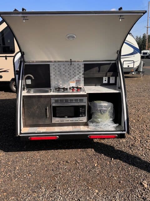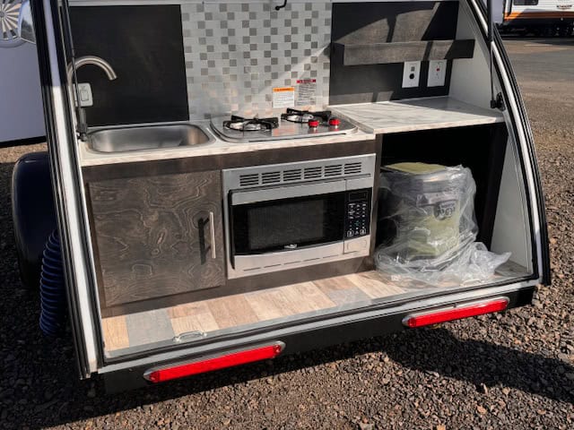 This is a wonderful teardrop trailer in mint condition. Used only for year and half. It's super easy to drive and easy to just pack and leave. It's light and easy to haul around. Comes with solar panels, a fully equipped kitchen with a microwave, a small water tank, sink and faucet, also comes with 2 twin mattresses in perfect condition, wood cabinets, reading lights and ambient lighting, a propane tank and a battery. We have thoroughly enjoyed using it and have taken very good care of it. Takes around 7 minutes to hook and leave. Whoever buys this will not regret it. Selling to upgrade.