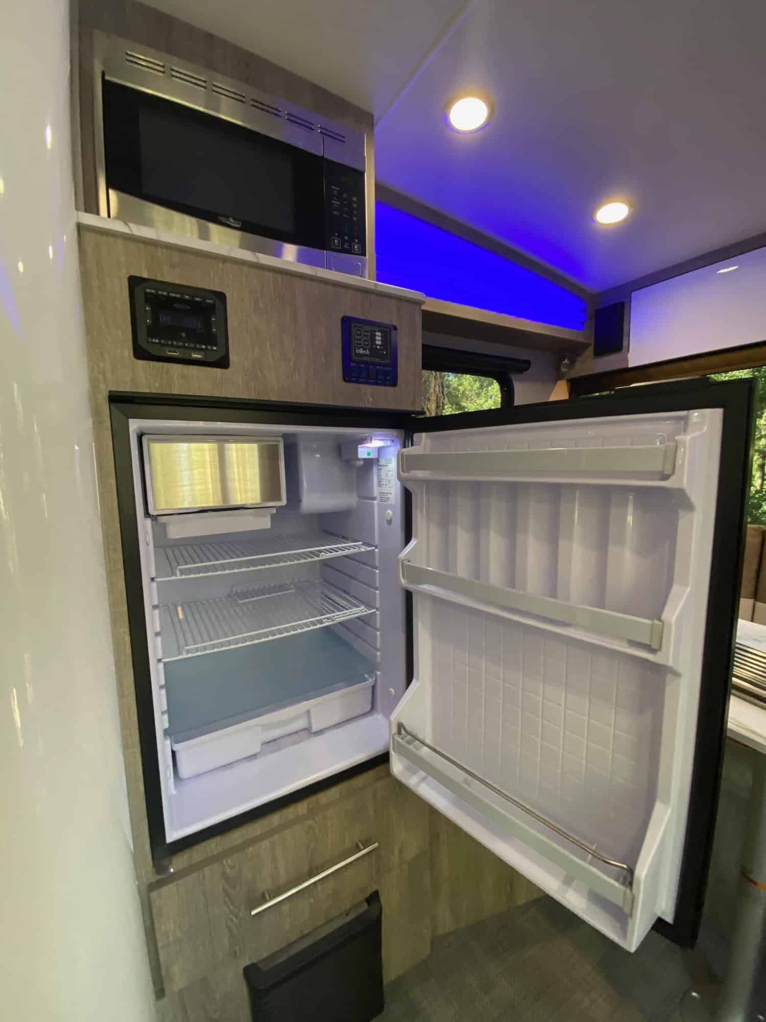 inTech is exceptional at making smaller spaces feel large. Utilizing what we call “Tilt–Forward Design”, we have taken advantage of the unused space over the trailer’s A-frame. The exterior profile provides more space in the front and rear of the camper and delivers 6’ 6” headroom at the peak. Sol Horizon gives you room to move around without feeling confined.