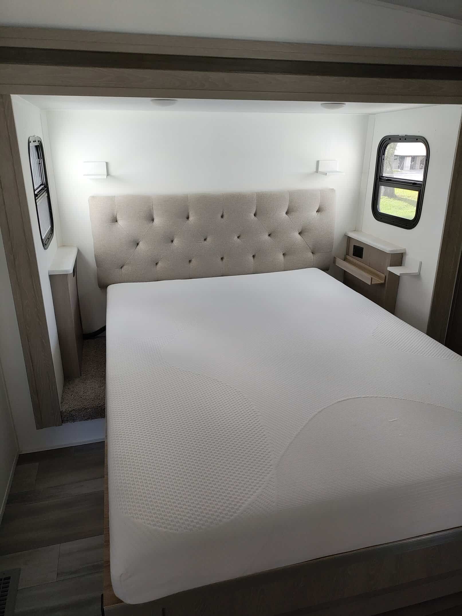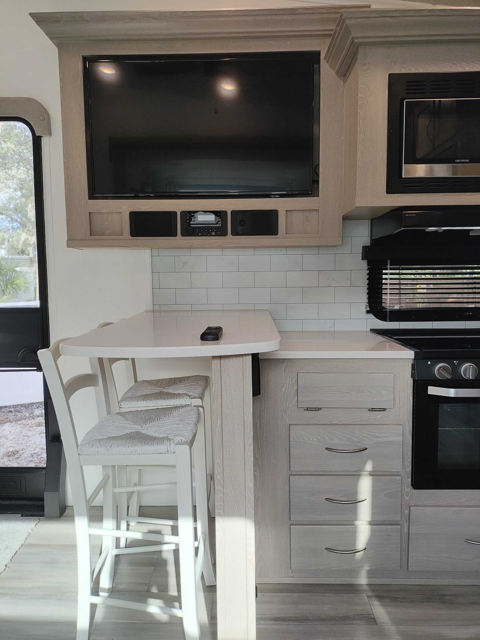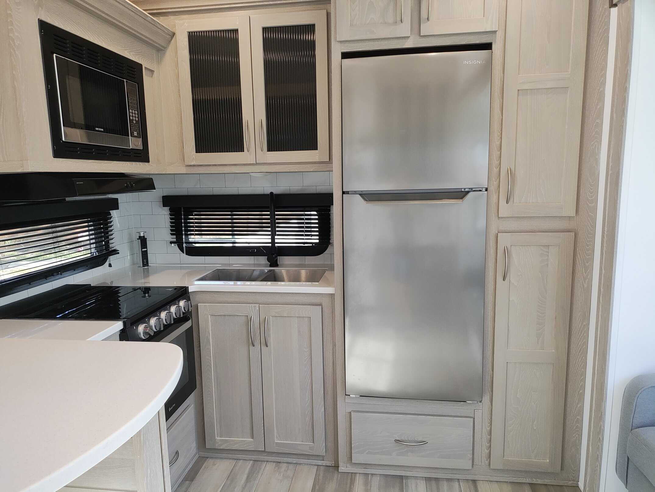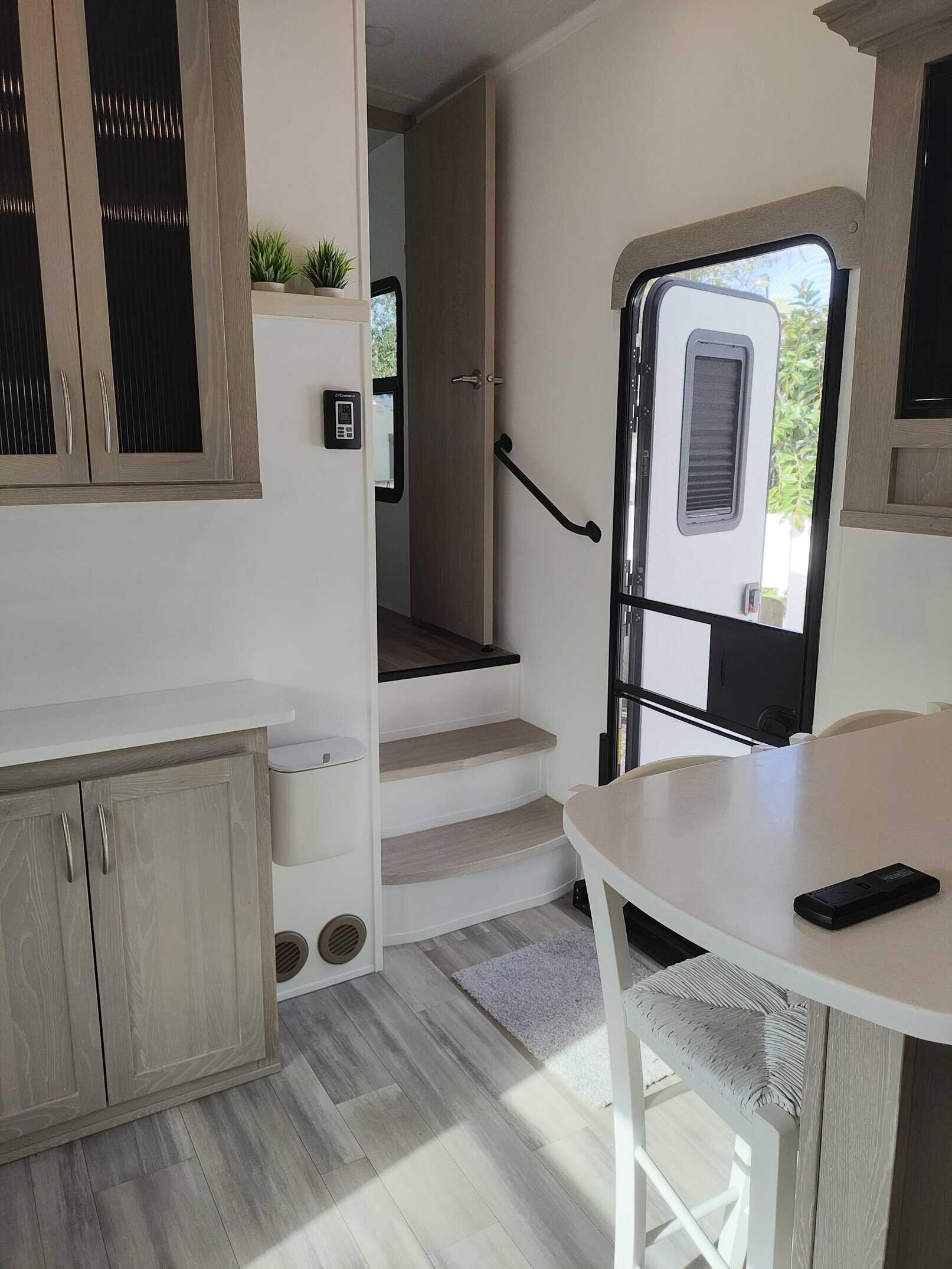 MUST SELL. MAKE AN OFFER. I’m the original owner of this RV. I’ve never traveled in it, I purchased it to live in full-time. Now that I’m older I’ve fallen on both the inside and outside steps so I think it’s a good time to sell it. The only mileage is when it was delivered to Florida from Coldwater Michigan and two local moves about 100 miles each. I’ve made some cosmetic changes to the inside since it basically has been my home. I removed the original theater seating because it was very hard and uncomfortable. I purchased a fabric sofa and it has been covered with a sofa cover with individual covers for each cushion and back pillows and another piece for the entire sofa. I also laid a piece of carpet on top of the mat that came with the RV under the sofa. The carpet is tacked down in a few areas with double stick tape but it can be lifted up and removed. About a year ago the refrigerator stopped cooling and the RV repair person that came out said it could be any of 3 parts or a combination of them and I would have to pay for all 3 because once the packages are opened they can’t be resold so I decided it made more sense to just buy a new fridge. I purchased a residential refrigerator since I lived in it full time. A few weeks ago the microwave stopped working. I will compensate for the cost of a new one. I changed the mattress to a full size because it’s just me and there’s more room to move around. The mattress has been kept in a mattress cover with a memory foam topper so it’s like new.