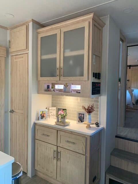 This fifth Wheel is showroom-ready and can be lived in full-time. It has a full-size refrigerator, gas stove, and oven, and has only been used three times. It has a washer and dryer hookup. It has a full-size stand-up shower, a Full closet with up-to-date barn sliding doors, and 2 Power awnings. 3 slide-outs. It has dual AC systems. An Electric fireplace that gives off a lot of heat for the winter months. Interior and exterior speakers and lights. Full size pantry, Auto leveling system , rear camera. Lots of storage space under the trailer in 3 different storage spots. Also so much storage behind the TV , above the TV. 4 different storage compartments above the couch.