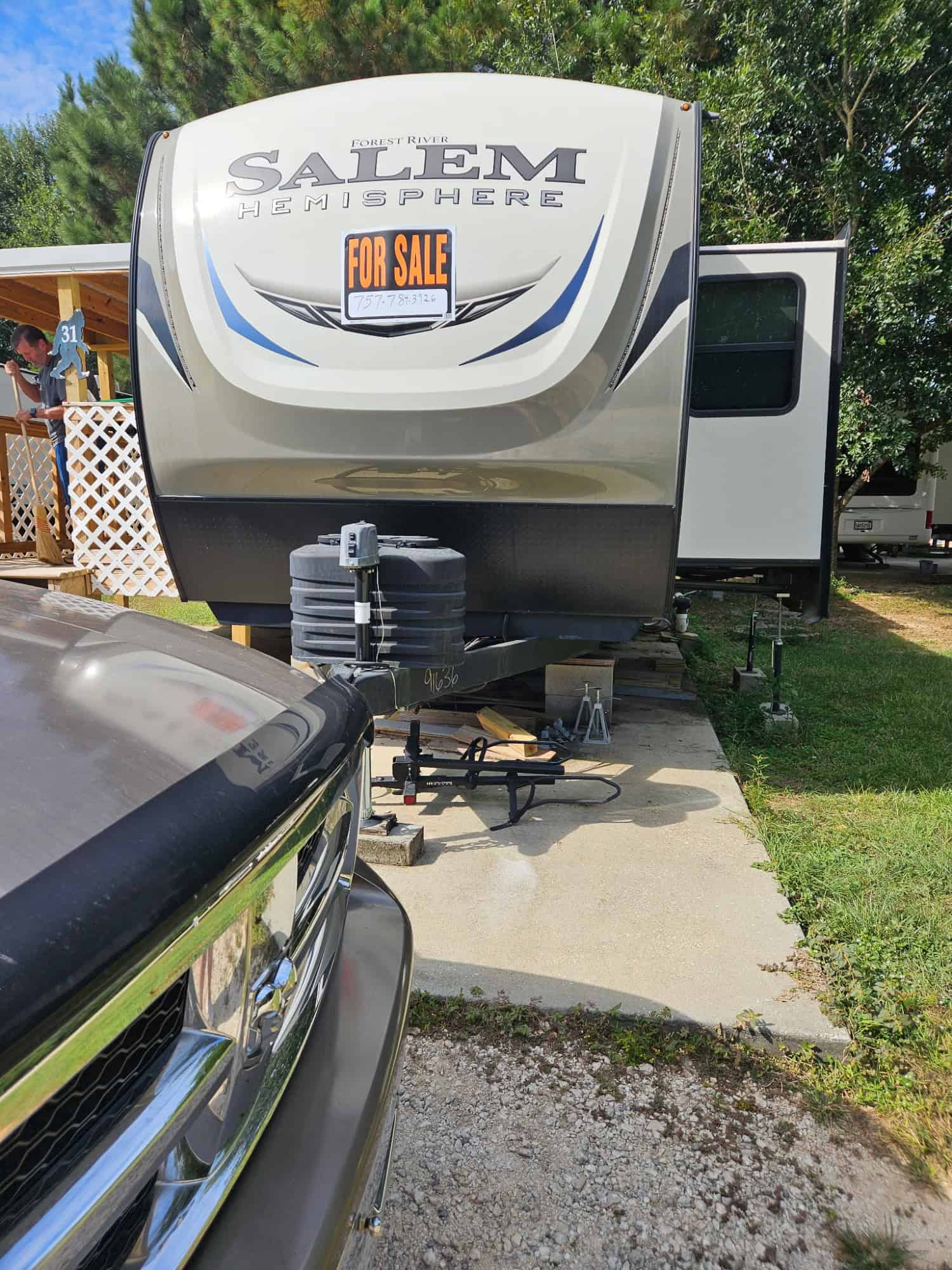 Parked in an RV park on a concrete pad since purchased new in 2023. Put in a split unit cooling and heating system which cut my electric bill in half. Also installed a residential toilet that flushes. There is a covered porch on the front that was just built recently. Its in southern Alabama.