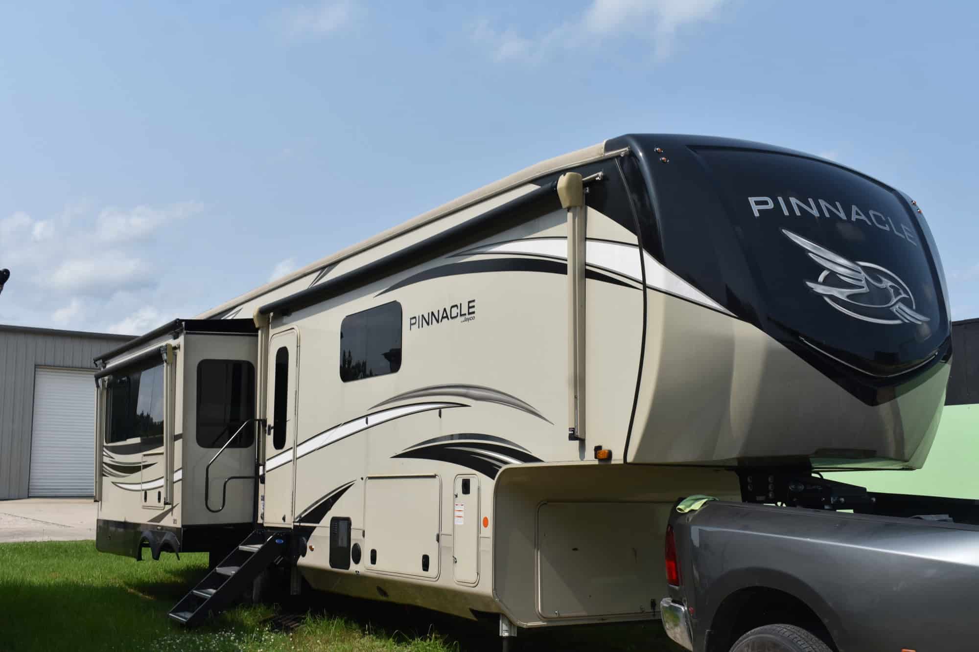 On the exterior, the Jayco Pinnacle boasts a sleek and modern design that is sure to turn heads wherever you go. The large windows and high-end finishes give this fifth wheel a high-end look that sets it apart from the competition. With a sturdy construction and high-quality materials, you can trust that your Jayco Pinnacle will provide a safe and reliable travel experience.